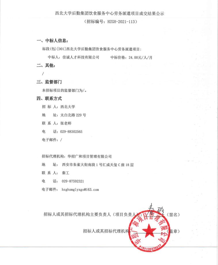 关于乐投平台后勤集团饮食服务中心劳务派遣项目成交结果公告