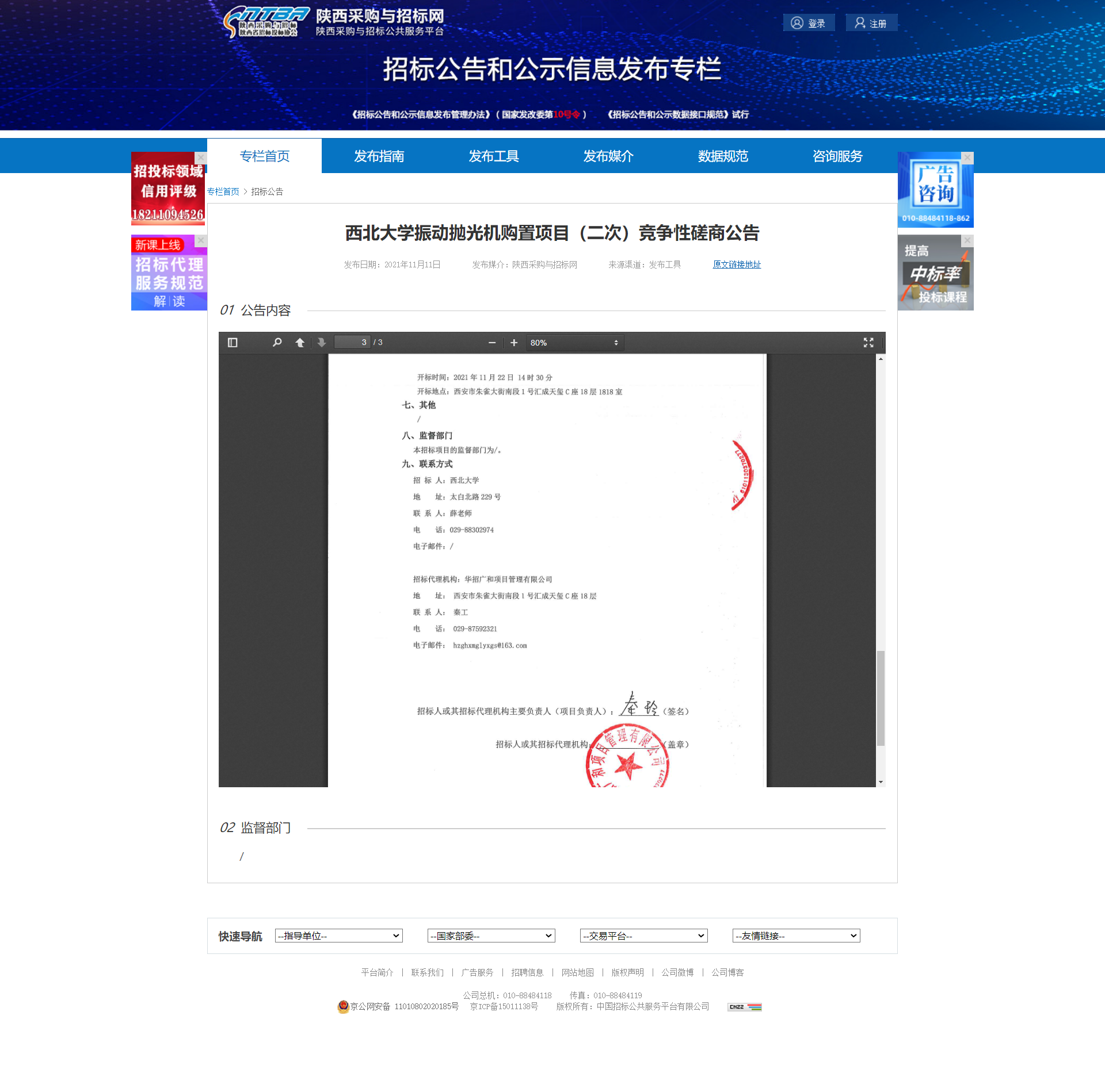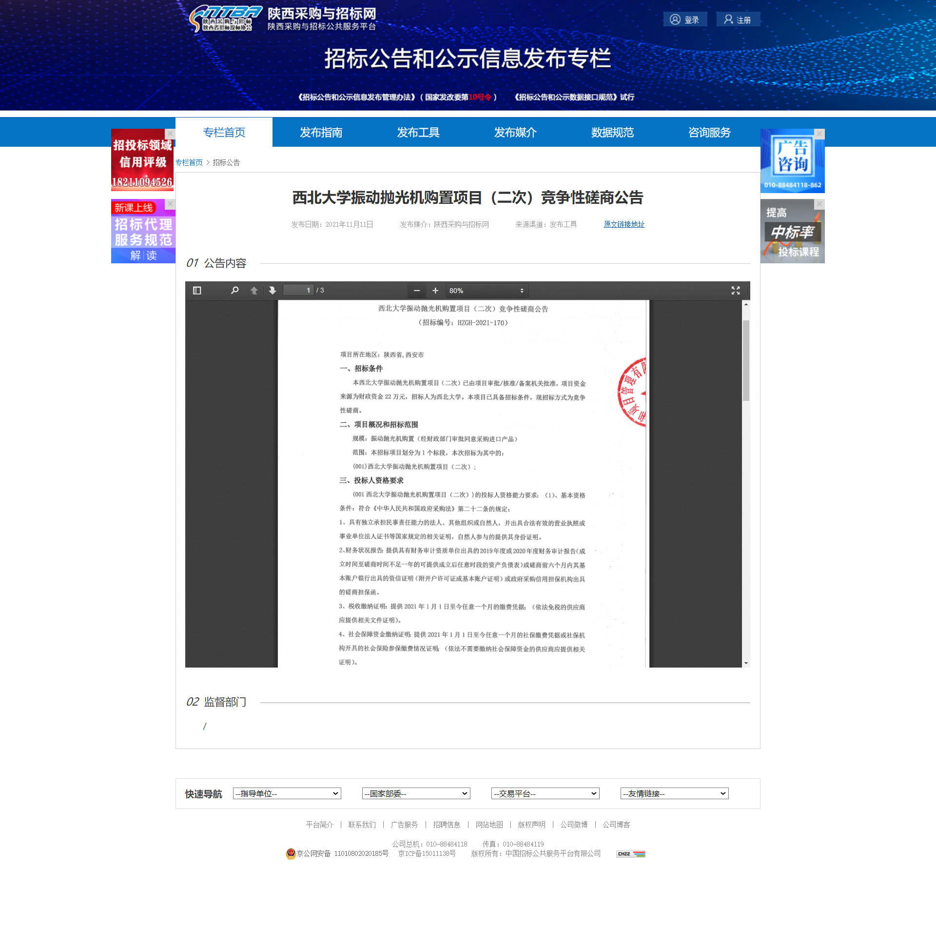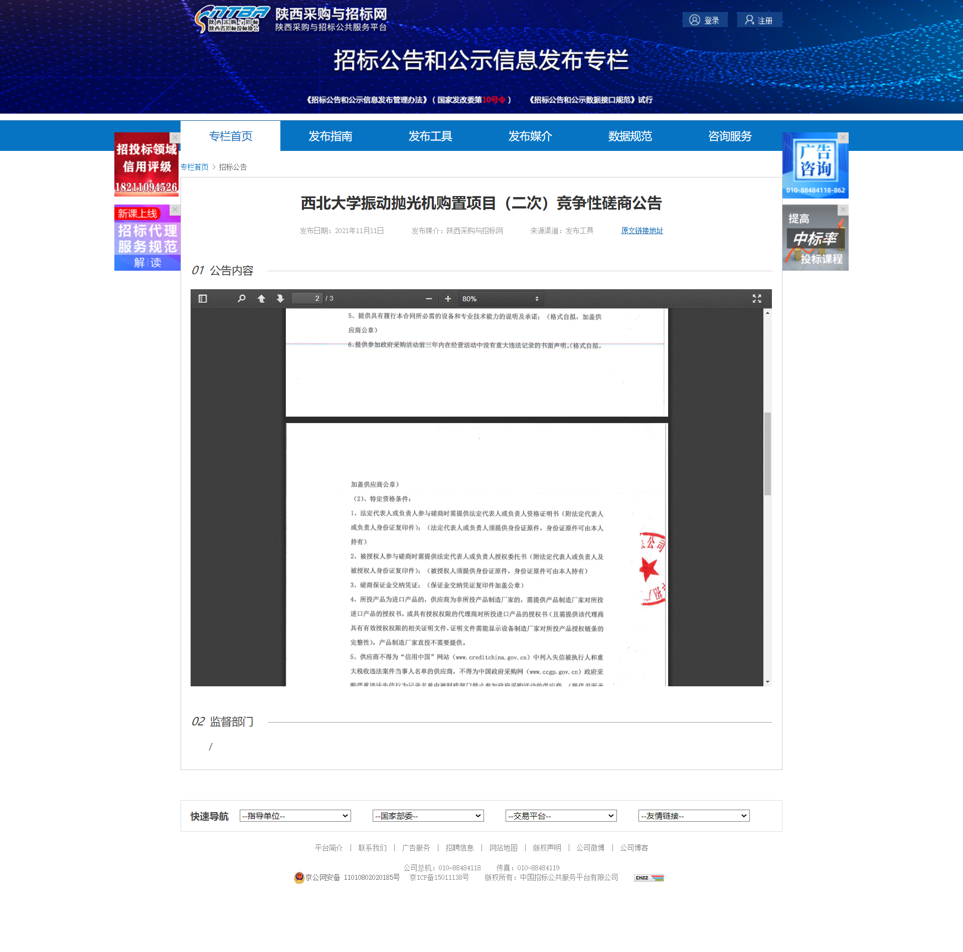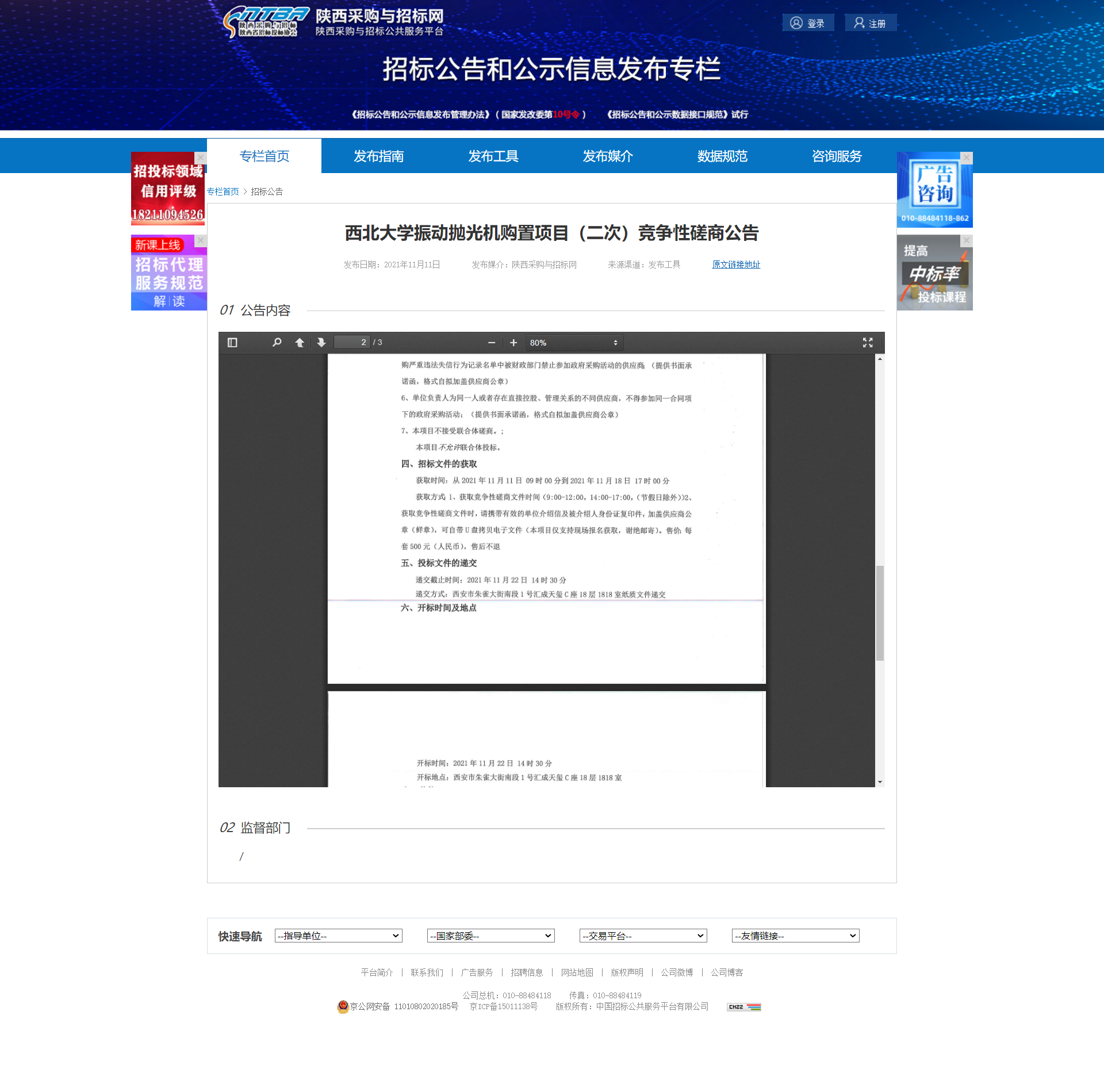 乐投平台振动抛光机购置项目(二次)竞争性磋商公告 作者: 编辑:薛利娟 时间:2021-11-11 原公告网址:http://bulletin.sntba.com/biddingBulletin/2021-11-11/363026.html