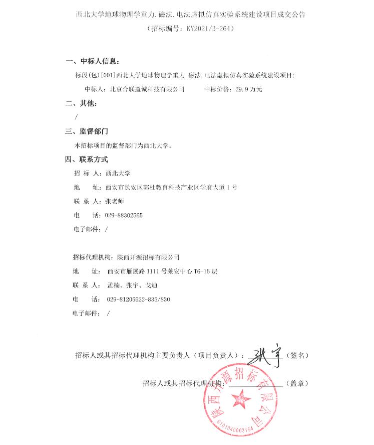 关于乐投平台地球物理学重力.磁法.电法虚拟仿真实验系统建设项目成交结果公告