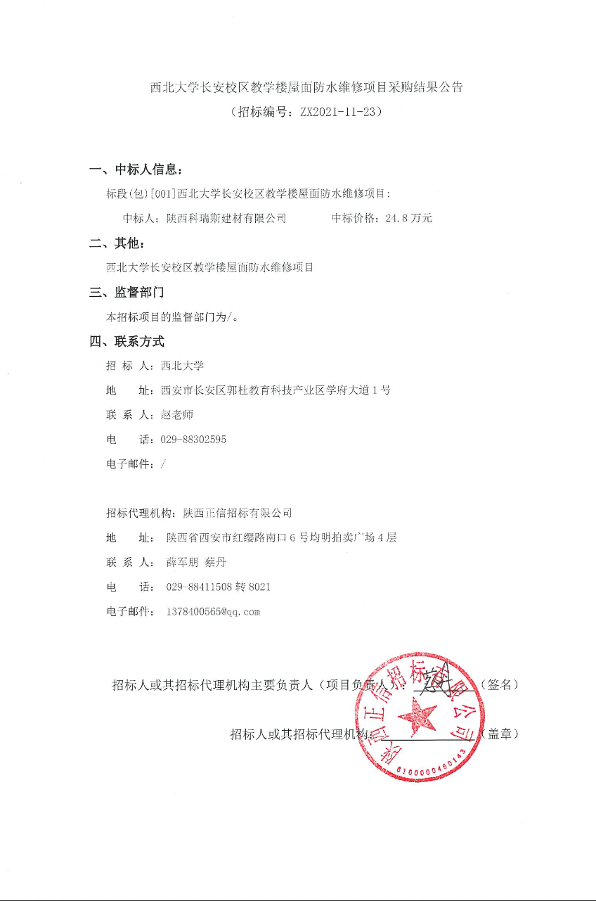 乐投平台长安校区教学楼屋面防水维修项目采购结果公告