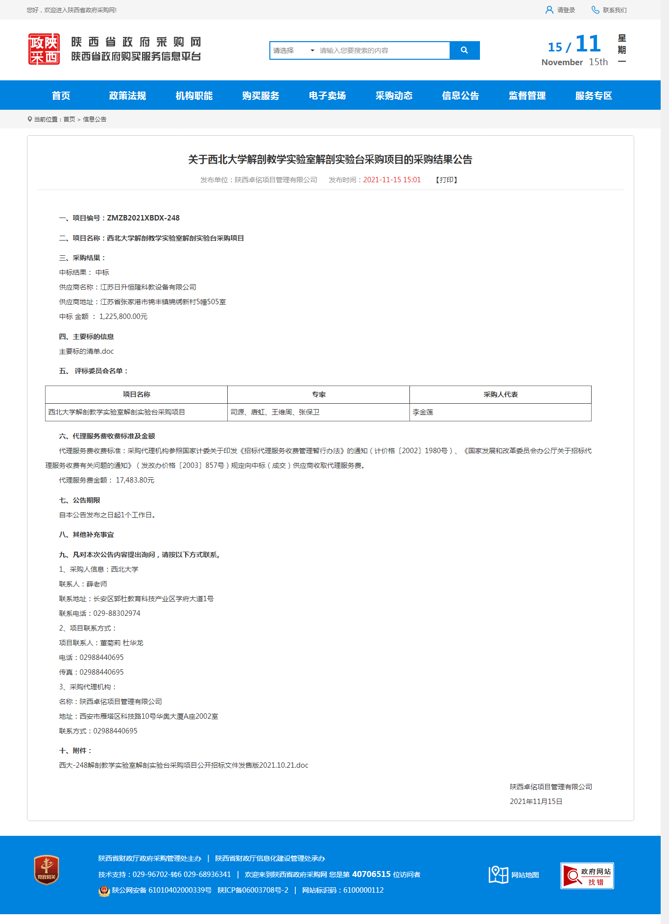 关于乐投平台解剖教学实验室解剖实验台采购项目的采购结果公告 作者: 编辑:薛利娟 时间:2021-11-15 原公告网址:http://www.ccgp-shaanxi.gov.cn/notice/noticeDetail.do?noticeguid=8a85be347cefc0a5017d2265933b409c