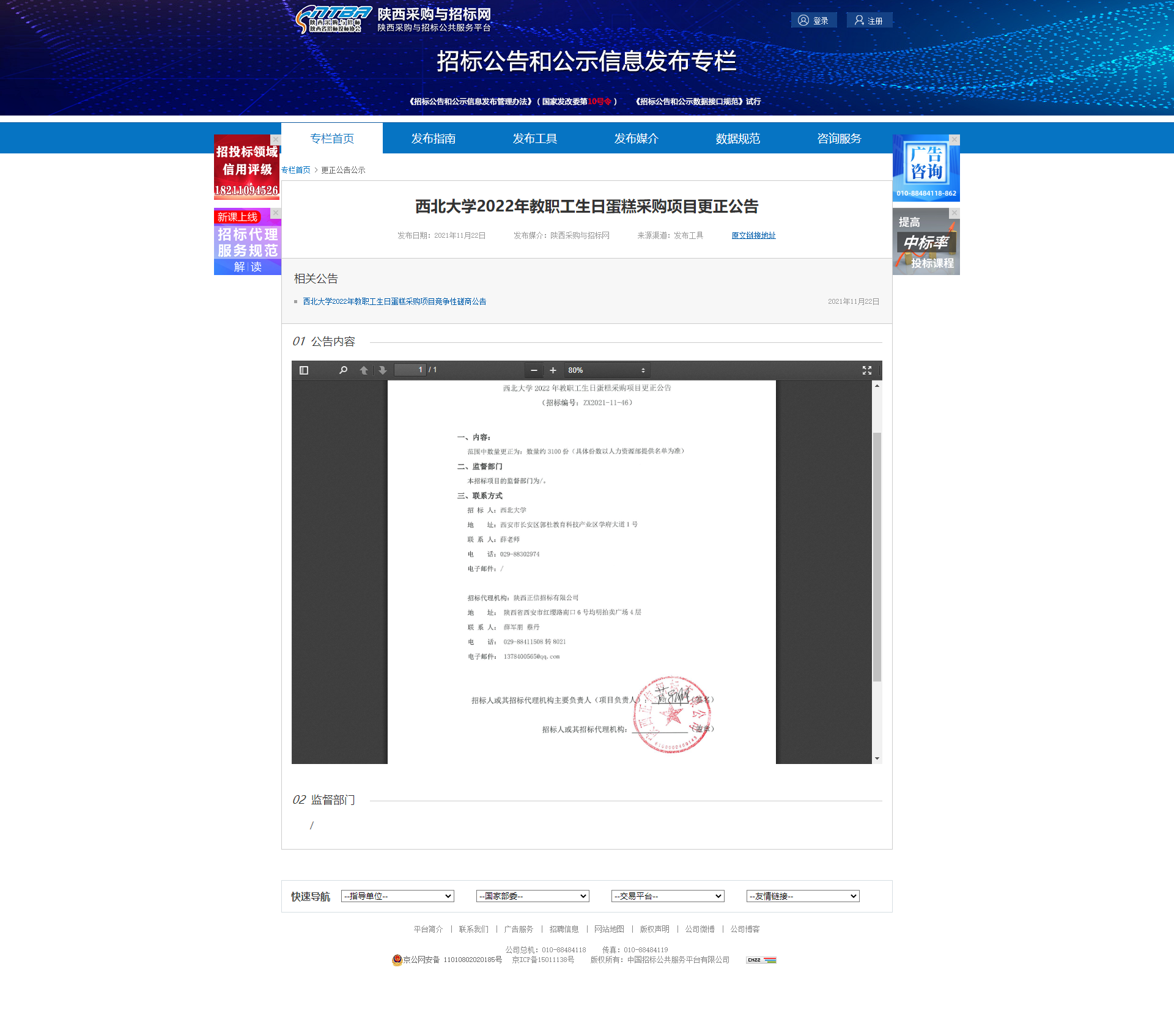 乐投平台2022年教职工生日蛋糕采购项目更正公告 作者: 编辑:薛利娟 时间:2021-11-24 原公告网址:http://bulletin.sntba.com/changeBulletin/2021-11-22/366977.html