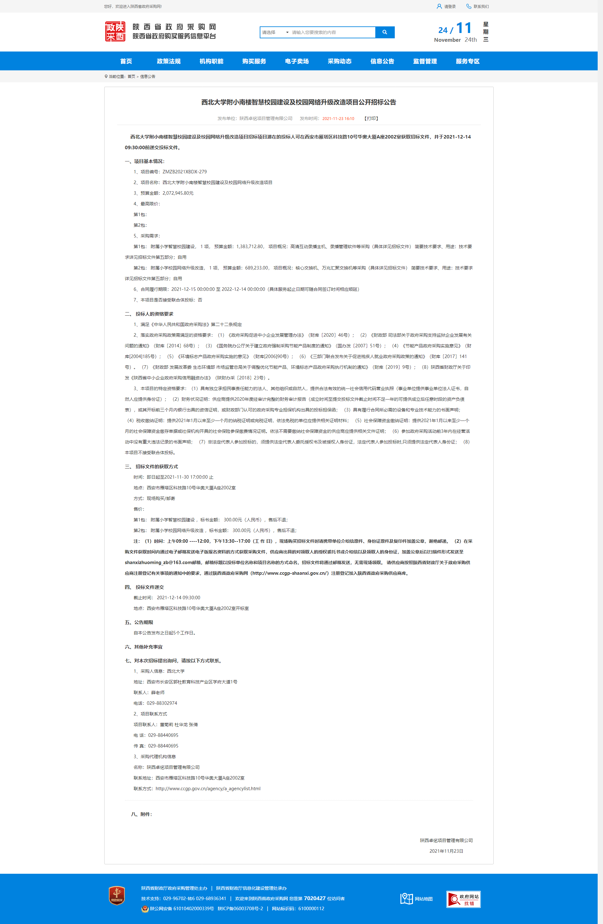 乐投平台附小南楼智慧校园建设及校园网络升级改造项目公开招标公告 作者: 编辑:薛利娟 时间:2021-11-24 原公告网址:http://www.ccgp-shaanxi.gov.cn/notice/noticeDetail.do?noticeguid=8a85be347d2d6f8d017d4af0eb515dc6