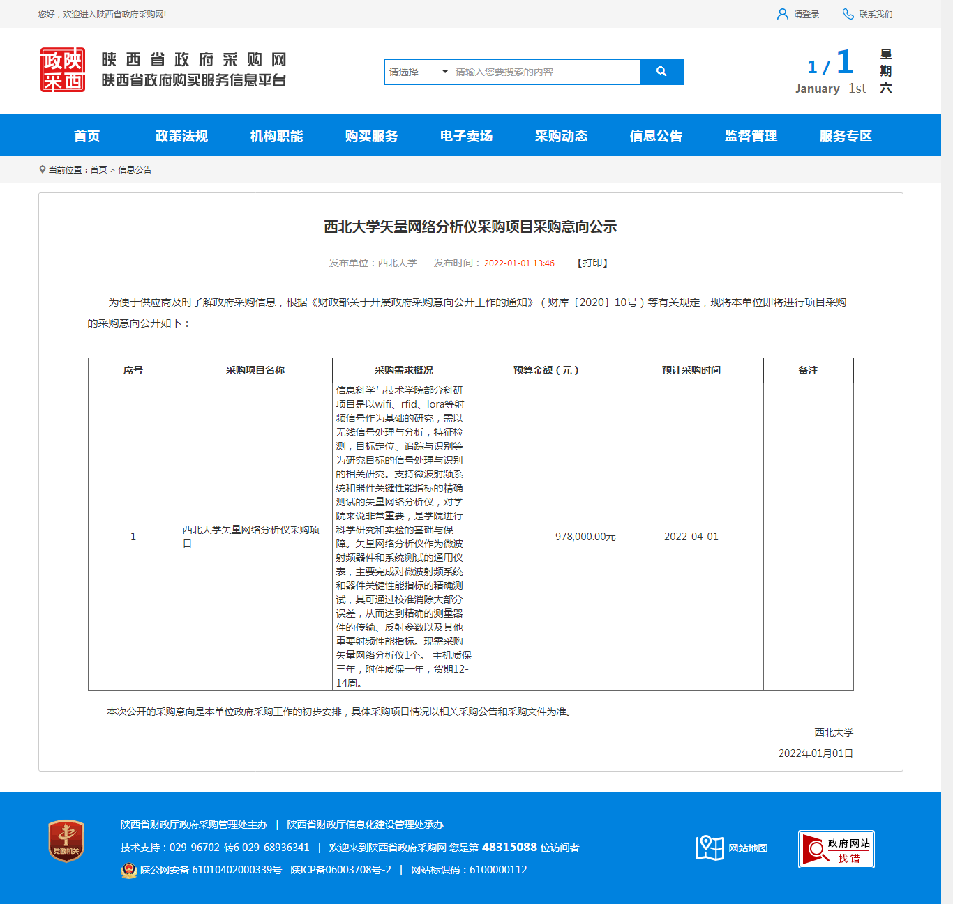乐投平台矢量网络分析仪采购项目采购意向公示 作者: 编辑:薛利娟 时间:2022-01-01 原公告链接:http://www.ccgp-shaanxi.gov.cn/notice/noticeDetail.do?noticeguid=8a85be327deba994017e1429df4c7a40