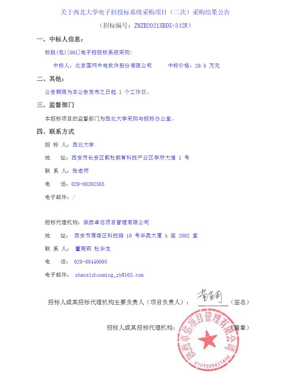 关于乐投平台电子招投标系统采购项目(二次)采购结果公告