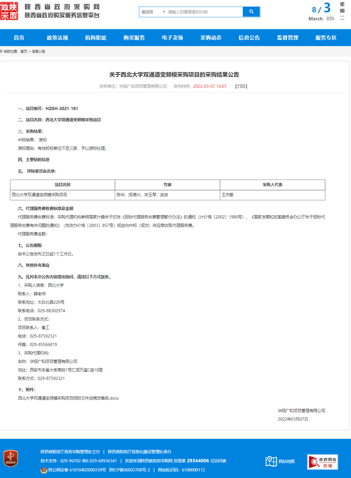 关于乐投平台双通道变频模采购项目的采购结果公告