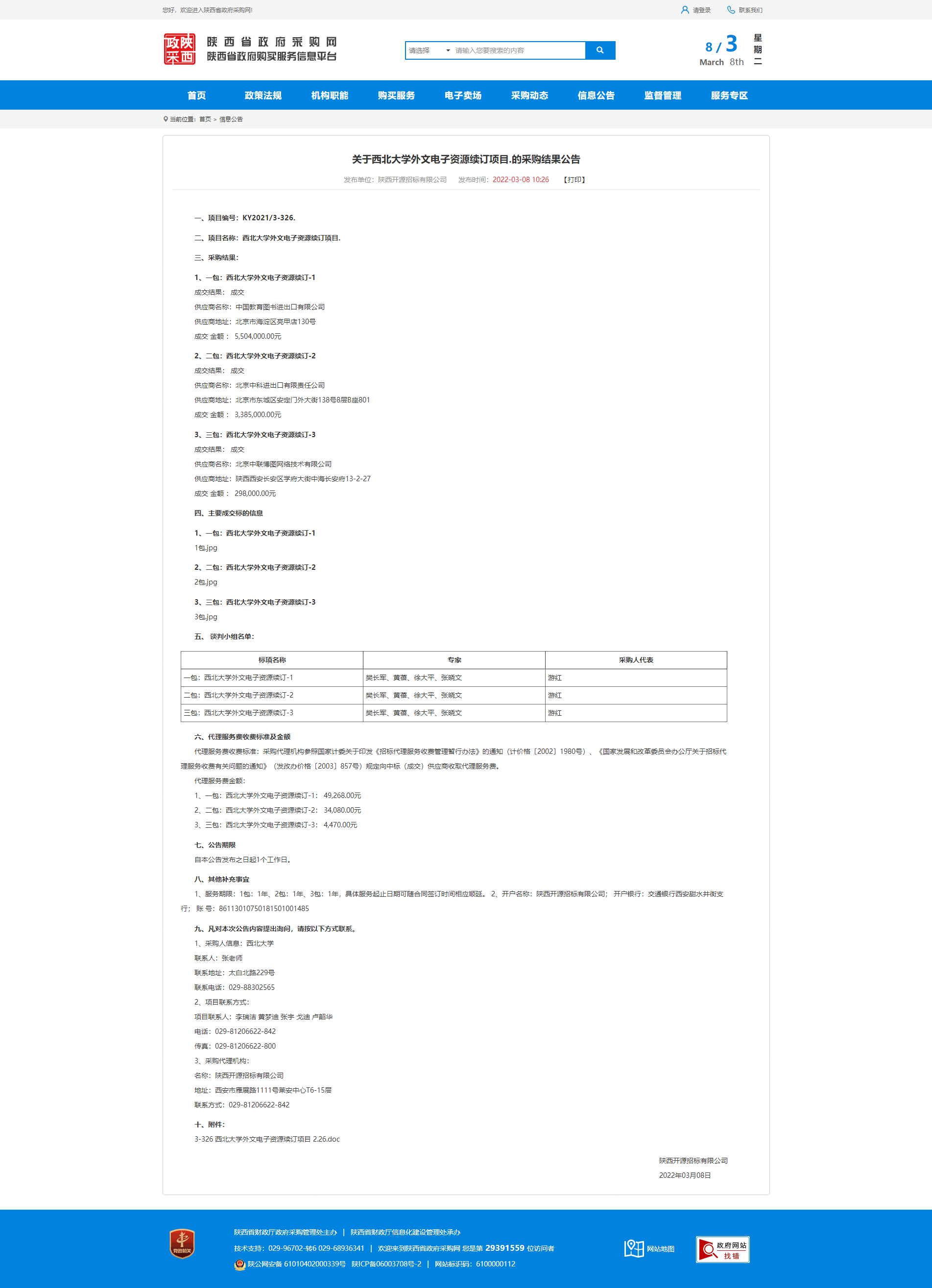 关于乐投平台外文电子资源续订项目的采购结果公告