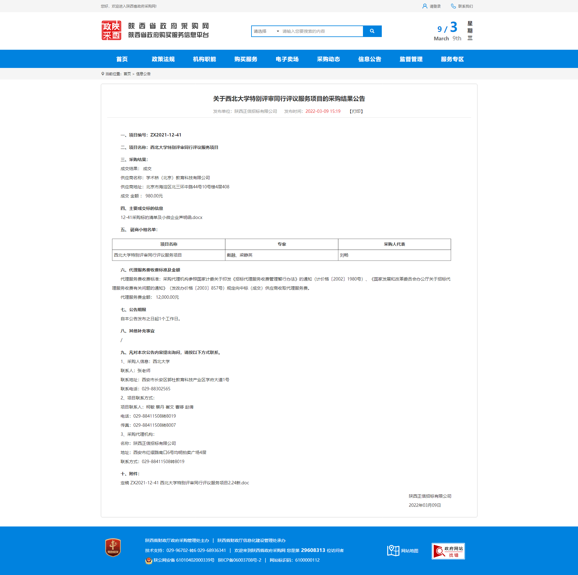 关于乐投平台特别评审同行评议服务项目的采购结果公告