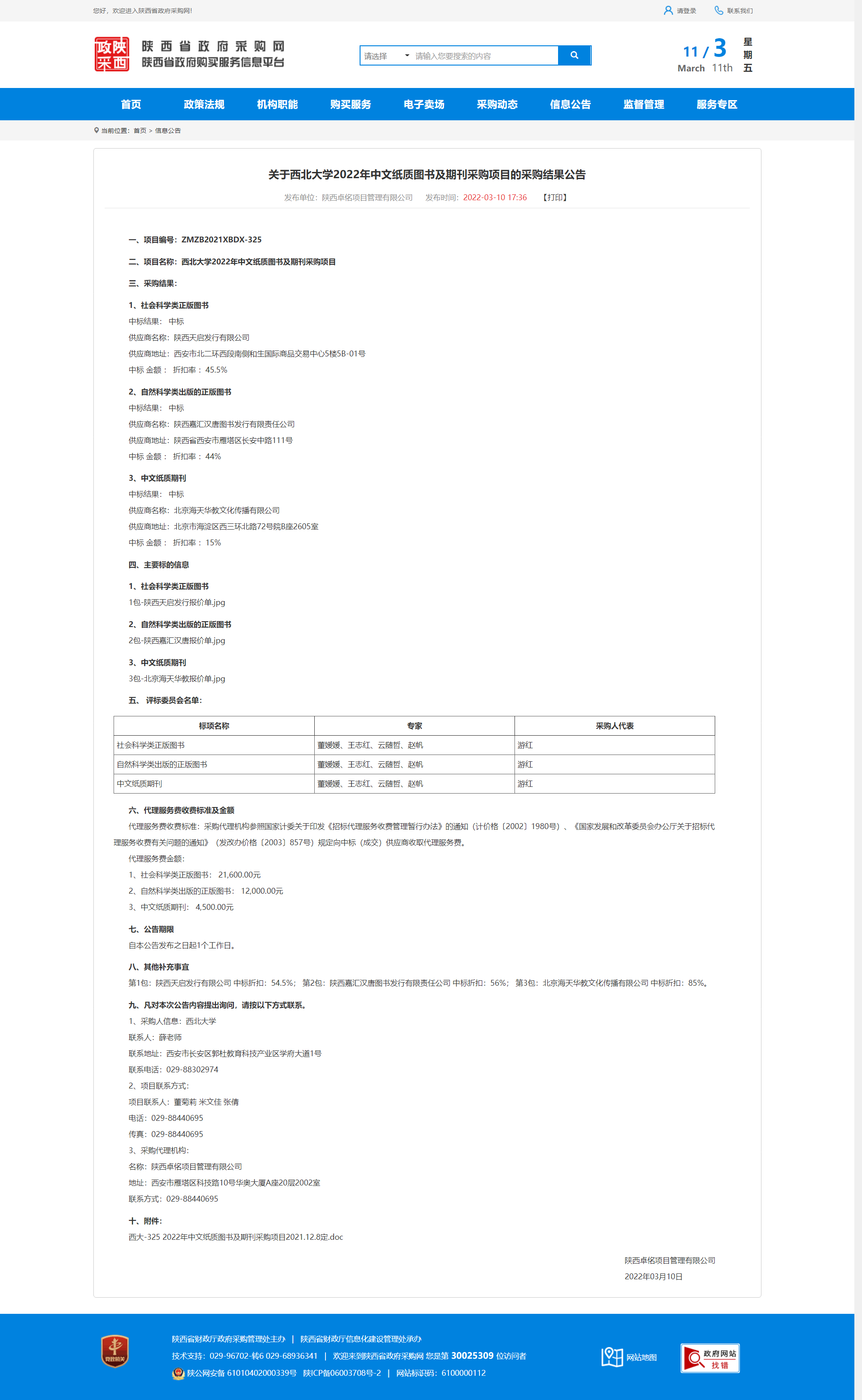关于乐投平台2022年中文纸质图书及期刊采购项目的采购结果公告 作者: 编辑:薛利娟 时间:2022-03-11 原公告链接:http://www.ccgp-shaanxi.gov.cn/notice/noticeDetail.do?noticeguid=8a85be327f3fe30d017f73289eba45db