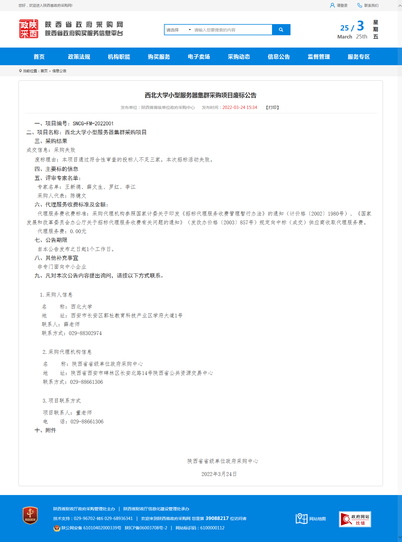 乐投平台小型服务器集群采购项目废标公告 作者: 编辑:薛利娟 时间:2022-03-25 原公告链接:http://113.200.80.230/notice/noticeDetail.do?noticeguid=8a85be387f91f0bf017fbb42ee960014