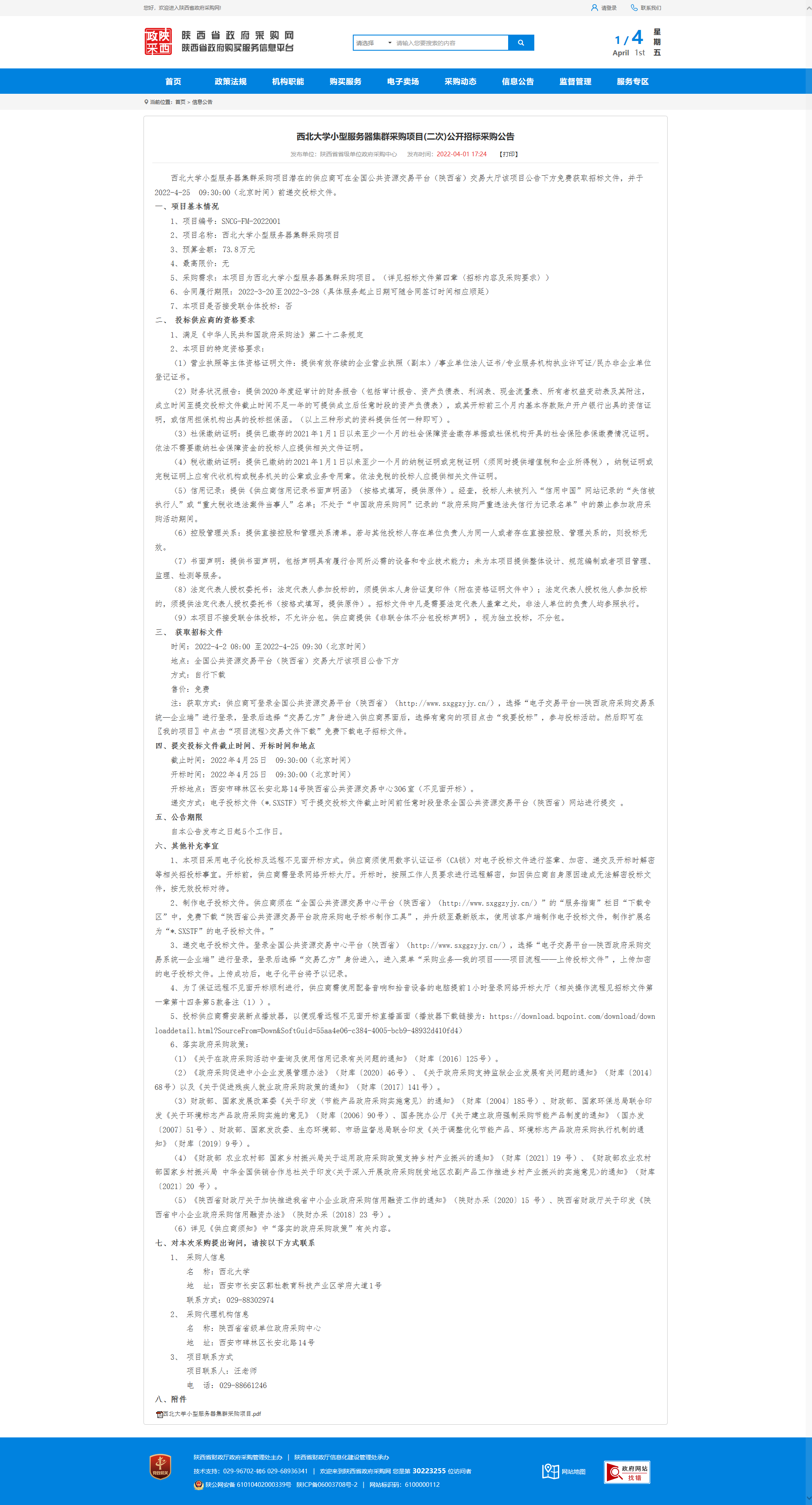 乐投平台小型服务器集群采购项目(二次)公开招标采购公告 作者: 编辑:薛利娟 时间:2022-04-01 原公告链接:http://113.200.80.230/notice/noticeDetail.do?noticeguid=8a85be387f91f0bf017fe46ddbfd001c