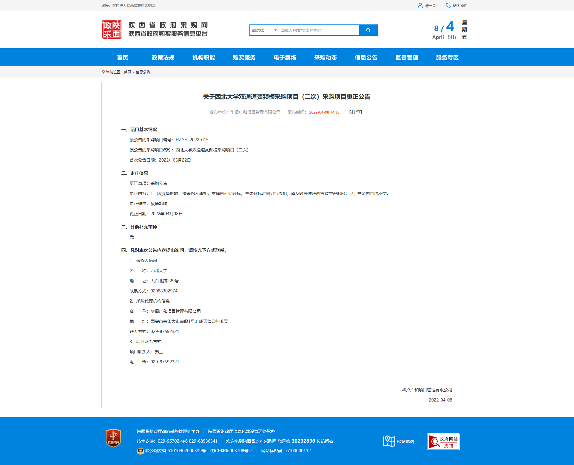 关于乐投平台双通道变频模采购项目(二次)采购项目更正公告 作者: 编辑:薛利娟 时间:2022-04-08 原公告链接:http://113.200.80.230/notice/noticeDetail.do?noticeguid=8a85be347fe4a76e018007e0548720b9
