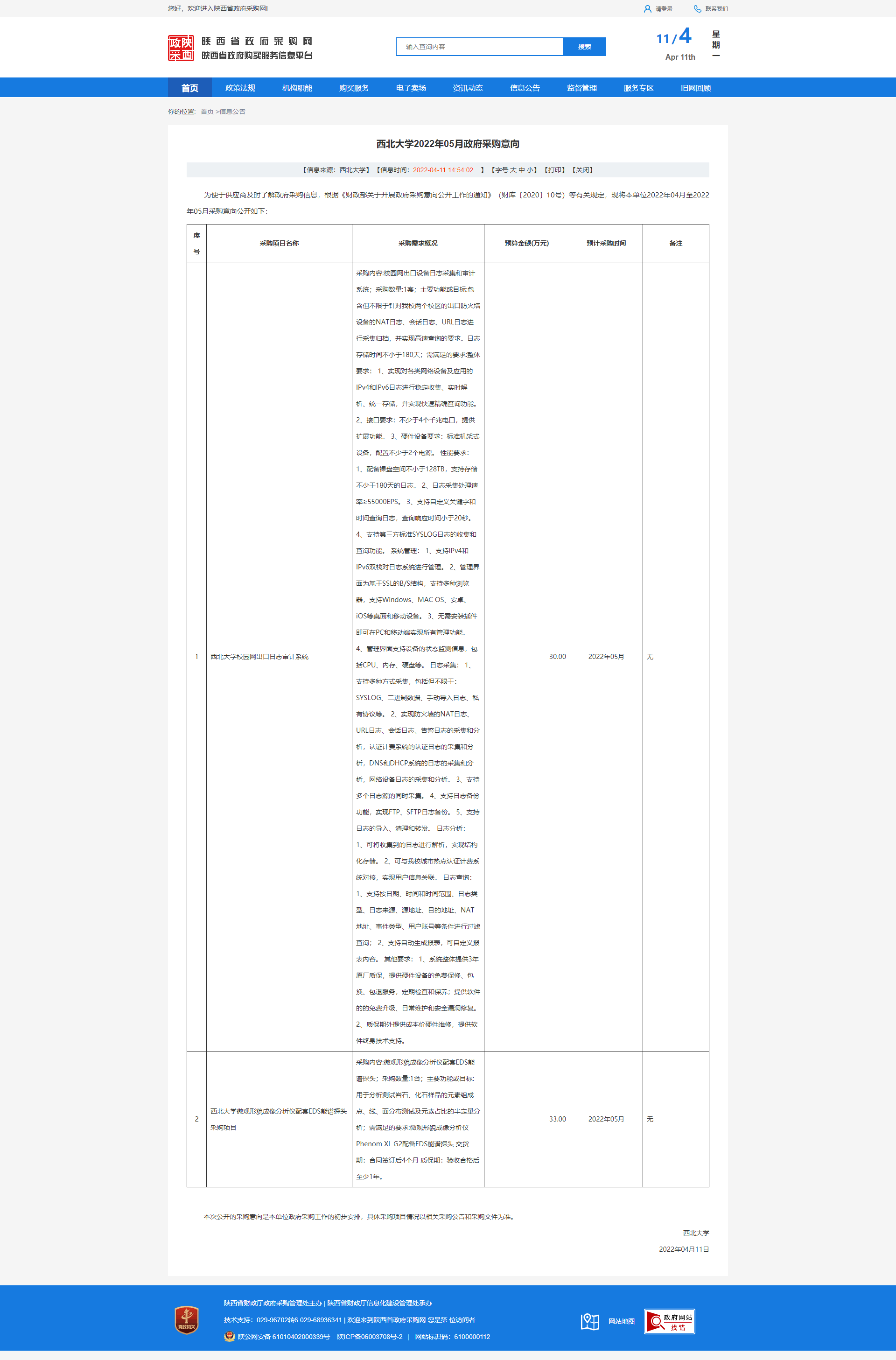 乐投平台2022年05月政府采购意向 作者: 编辑:薛利娟 时间:2022-04-11 原公告链接:http://www.ccgp-shaanxi.gov.cn/freecms/site/shaanxi/ggxx/info/2022/8a69c92a80033b740180168305694239.html?noticeType=59¬iceId=4c032207-b964-11ec-9a8e-08c0eb20c666