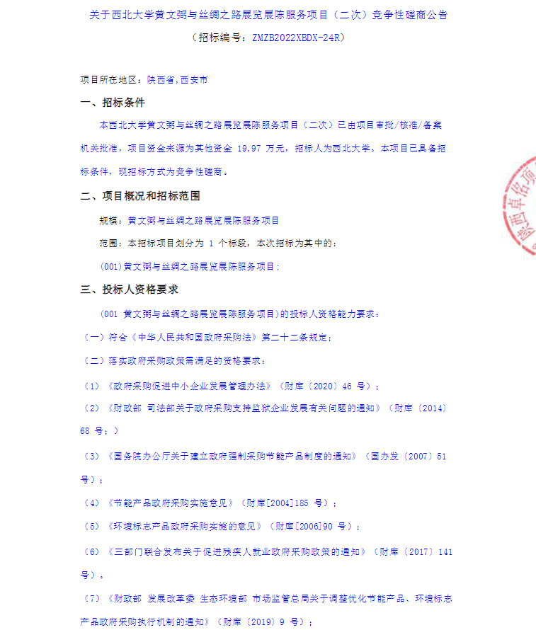 关于乐投平台黄文弼与丝绸之路展览展陈服务项目(二次)竞争性磋商公告