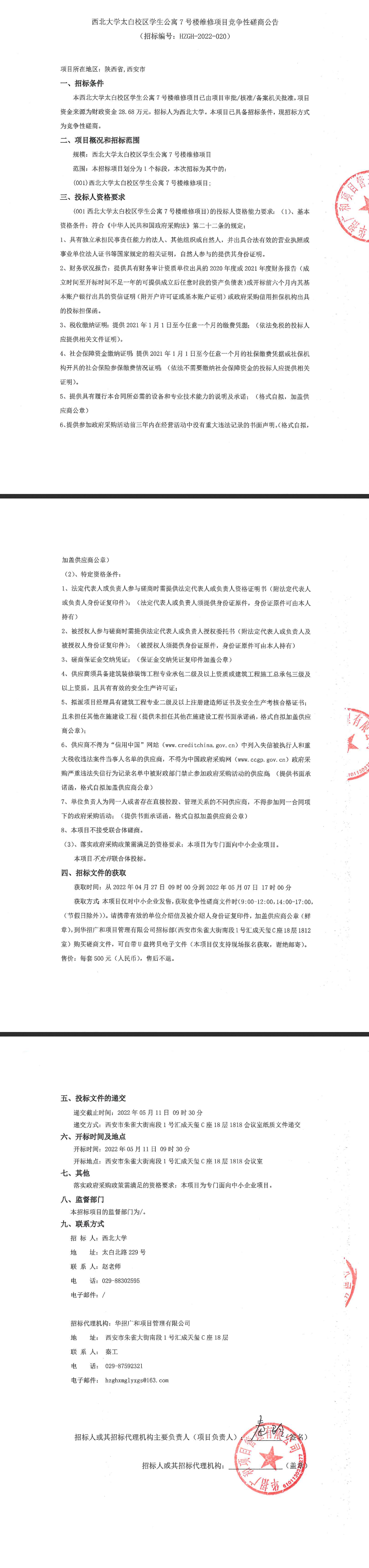 乐投平台太白校区学生公寓7号楼维修项目竞争性磋商公告