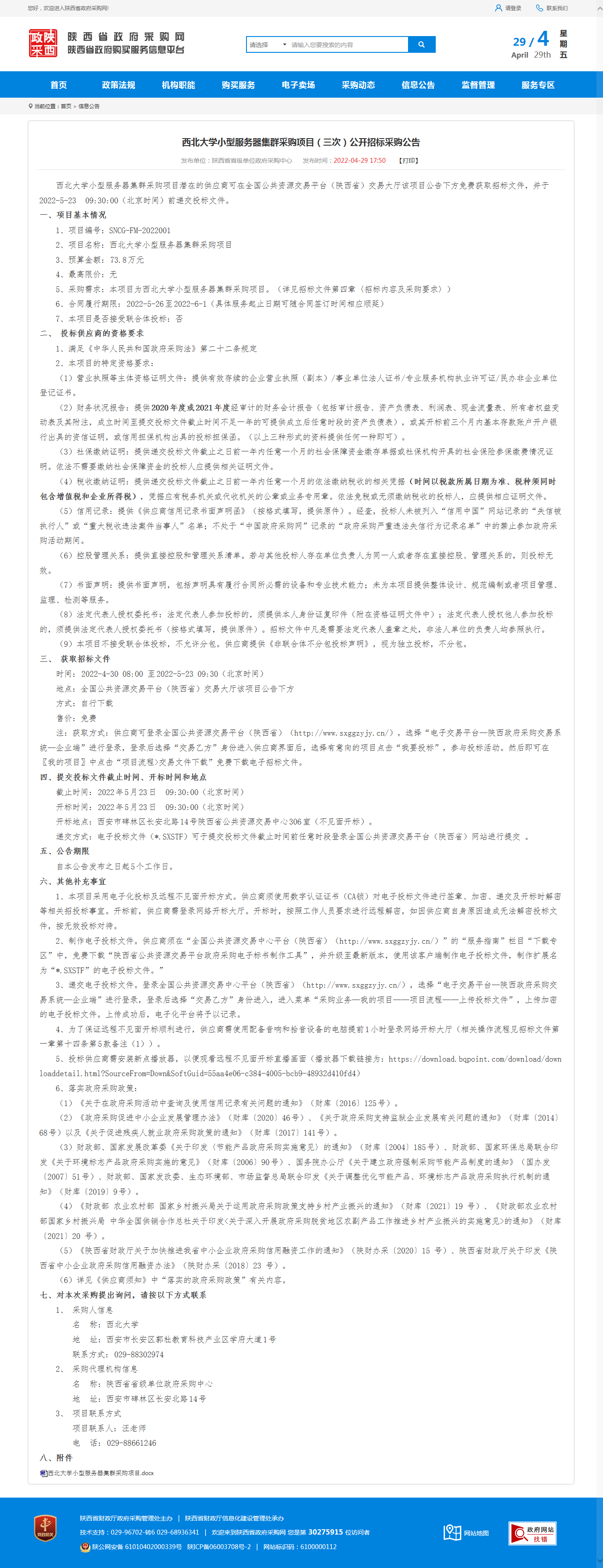 乐投平台小型服务器集群采购项目(三次)公开招标采购公告 作者: 编辑:薛利娟 时间:2022-04-29 原公告链接:http://113.200.80.230/notice/noticeDetail.do?noticeguid=8a85be387f91f0bf018074b7b951003b