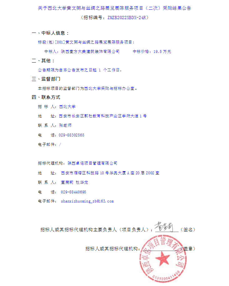 关于乐投平台黄文弼与丝绸之路展览展陈服务项目(二次)采购结果公告