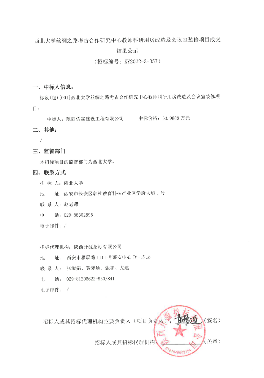 乐投平台丝绸之路考古合作研究中心教师科研用房改造及会议室装修项目成交结果公示