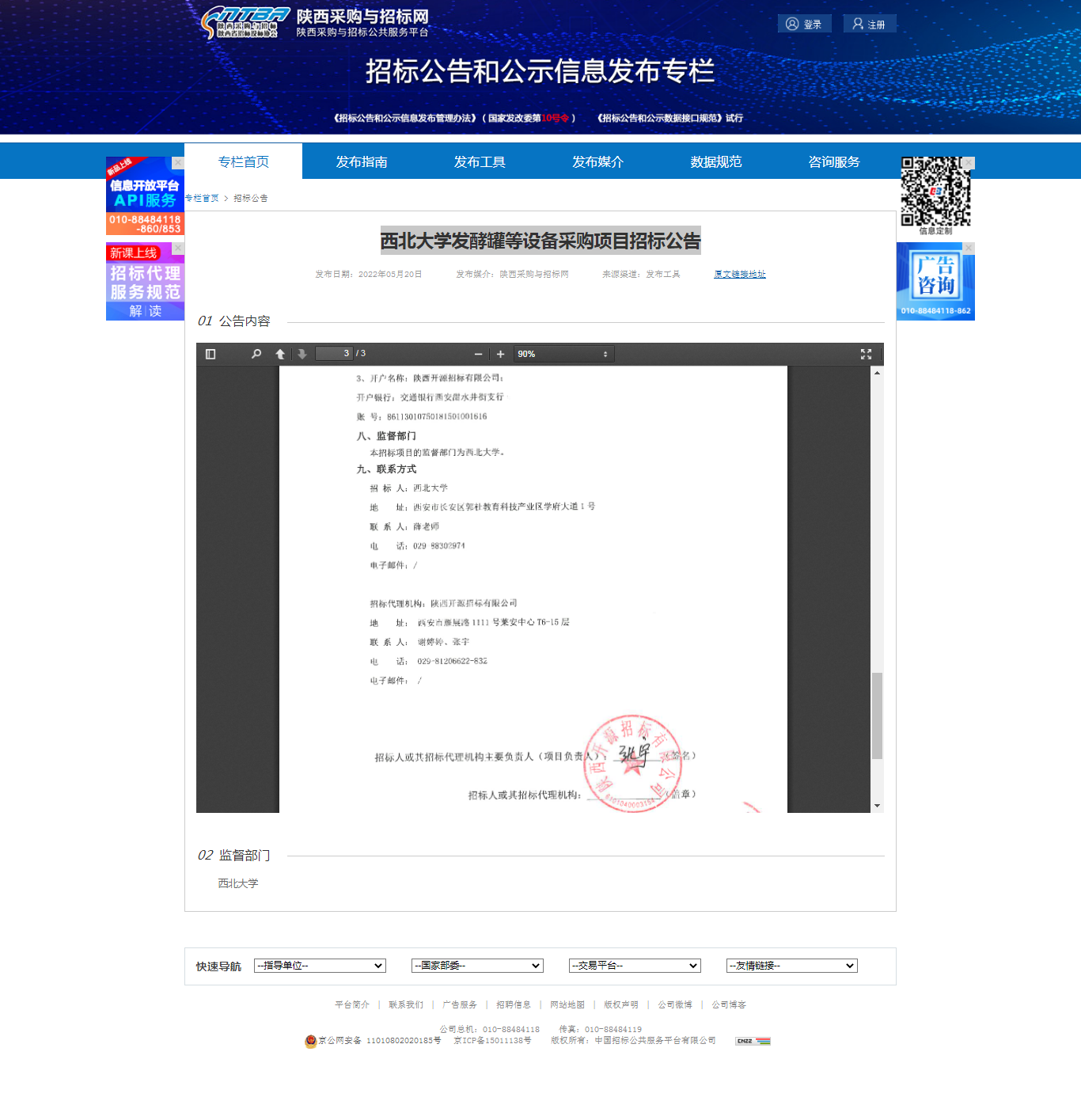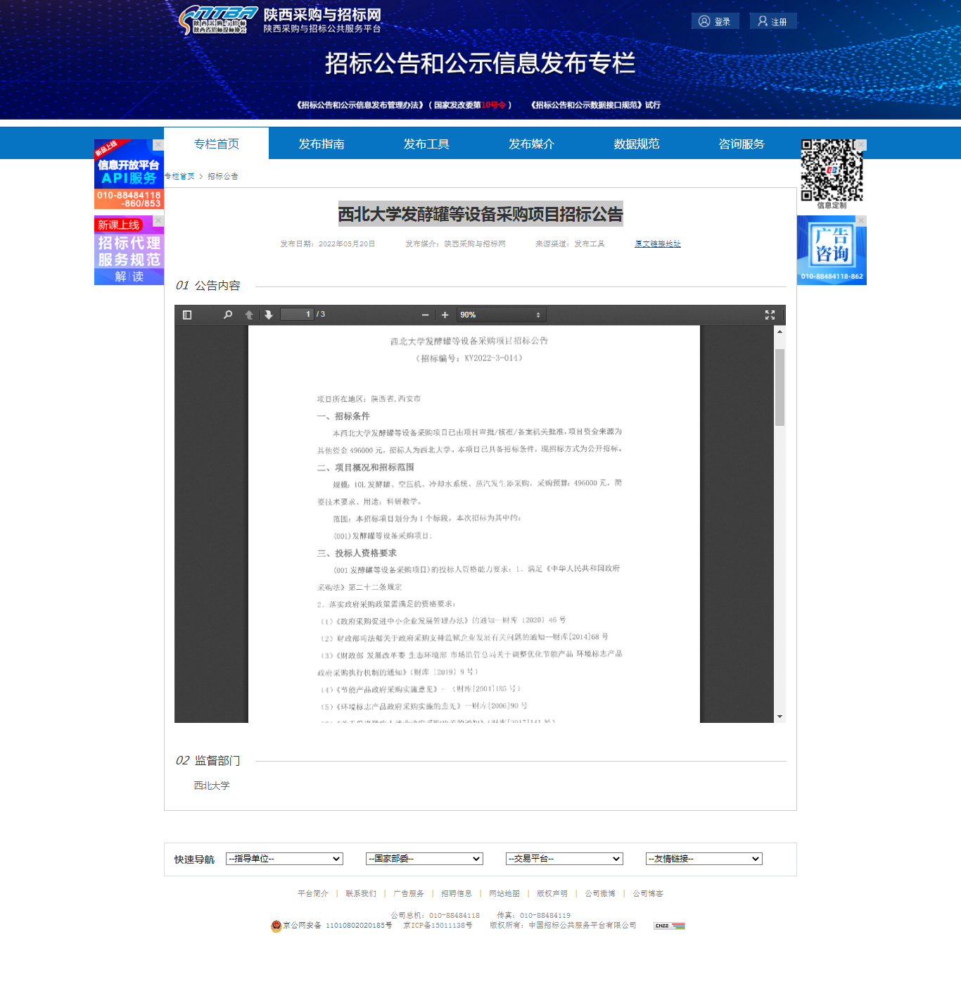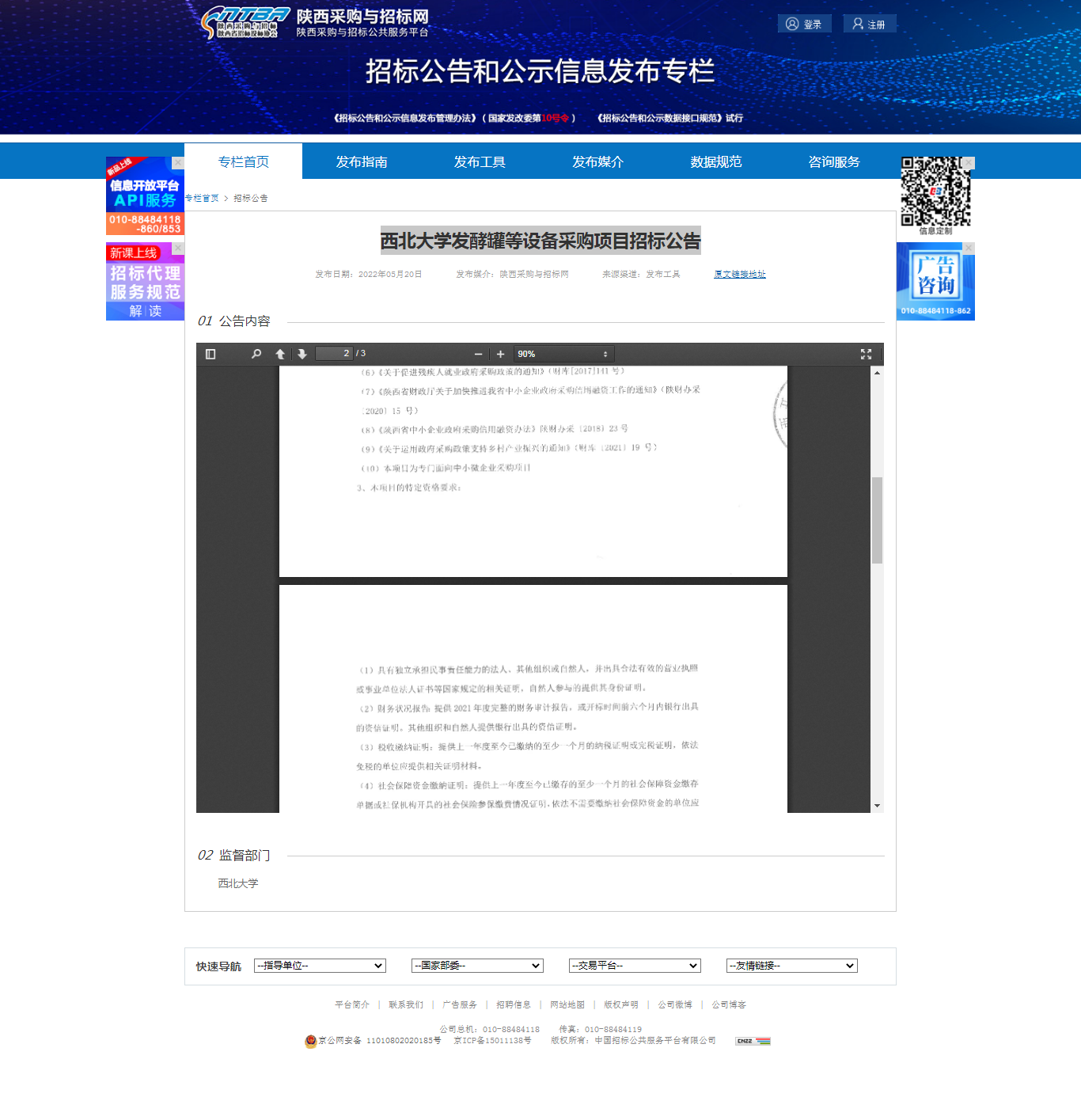 乐投平台发酵罐等设备采购项目招标公告 作者: 编辑:薛利娟 时间:2022-05-20 原公告链接:http://bulletin.sntba.com/biddingBulletin/2022-05-20/423713.html