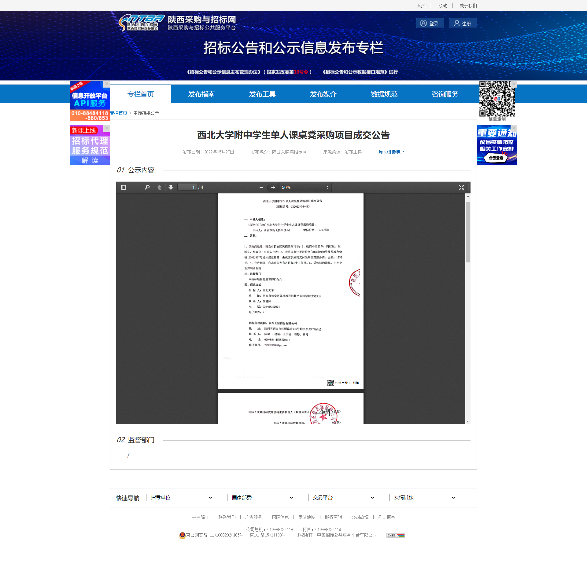 乐投平台附中学生单人课桌凳采购项目成交公告 作者: 编辑:薛利娟 时间:2022-05-27 原公告链接:http://bulletin.sntba.com/resultBulletin/2022-05-27/426250.html
