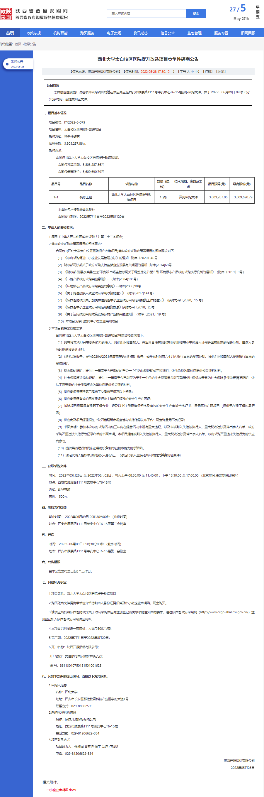 乐投平台太白校区医院提升改造项目竞争性磋商公告