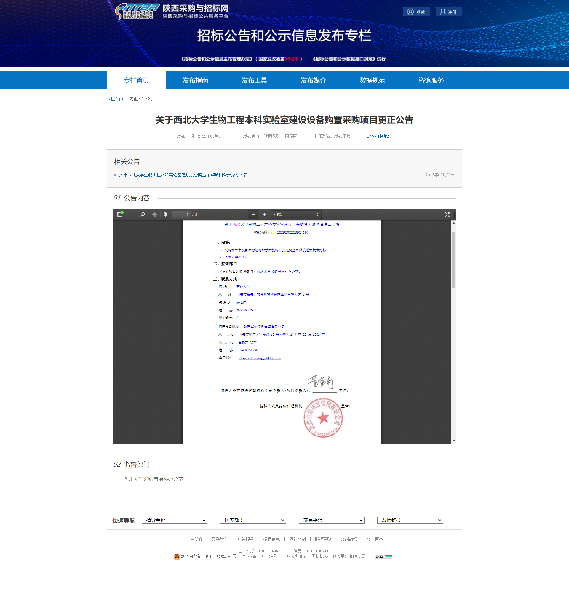 关于乐投平台生物工程本科实验室建设设备购置采购项目更正公告 作者: 编辑:薛利娟 时间:2022-05-27 原公告链接:http://bulletin.sntba.com/changeBulletin/2022-05-27/426559.html