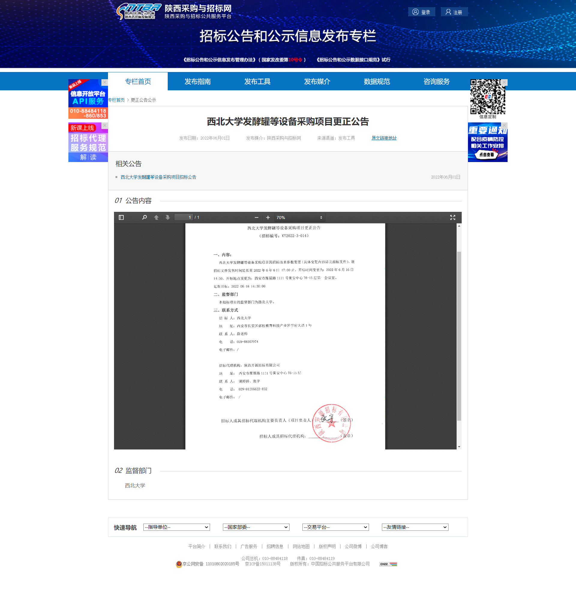 乐投平台发酵罐等设备采购项目更正公告 作者: 编辑:薛利娟 时间:2022-06-01 原公告链接:http://bulletin.sntba.com/changeBulletin/2022-06-01/428102.html