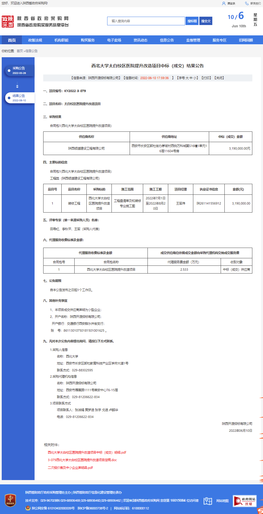 乐投平台太白校区医院提升改造项目中标(成交)结果公告
