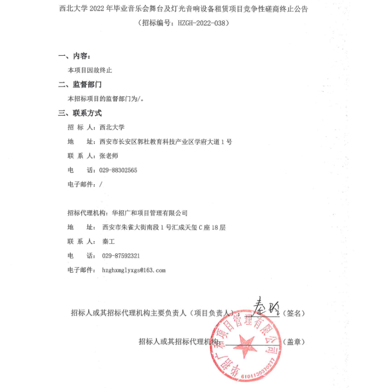 关于乐投平台2022年毕业音乐会舞台及灯光音响设备租赁项目竞争性磋商终止公告