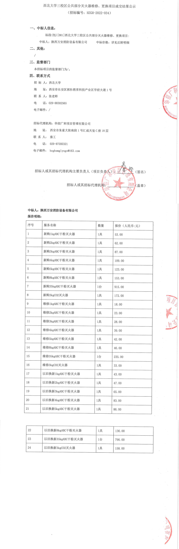关于乐投平台三校区公共部分灭火器维修、更换项目成交结果公示
