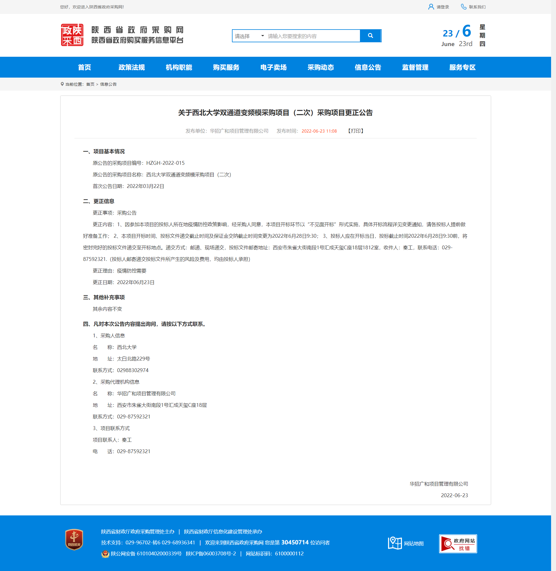 关于乐投平台双通道变频模采购项目(二次)采购项目更正公告 作者: 编辑:薛利娟 时间:2022-06-23 原公告链接:http://113.200.80.230/notice/noticeDetail.do?noticeguid=8a85be3380b2b28401818e7fbfde4dfc