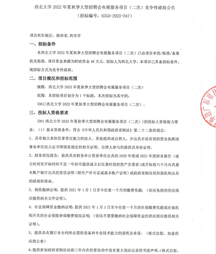 乐投平台2022年夏秋季大型招聘会布展服务项目(二次)竞争性磋商公告