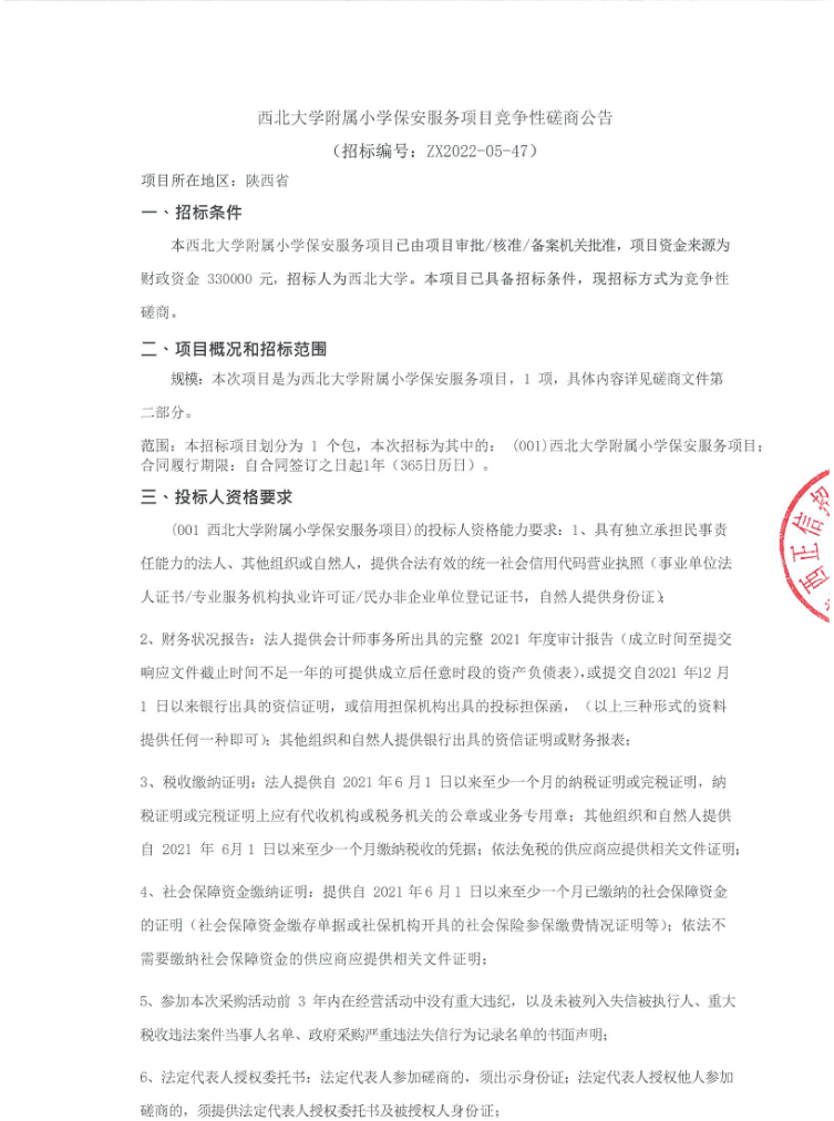 乐投平台附属小学保安服务项目竞争性磋商公告