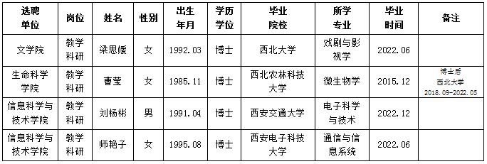 经用人单位推荐,人力资源部审查,学校教学督导及院系相关专家考核,乐投(中国)一站式服务平台拟确定下列人员来校工作。本着公平、公正、公开的原则,现将本次拟选聘人员基本情况公示如下: