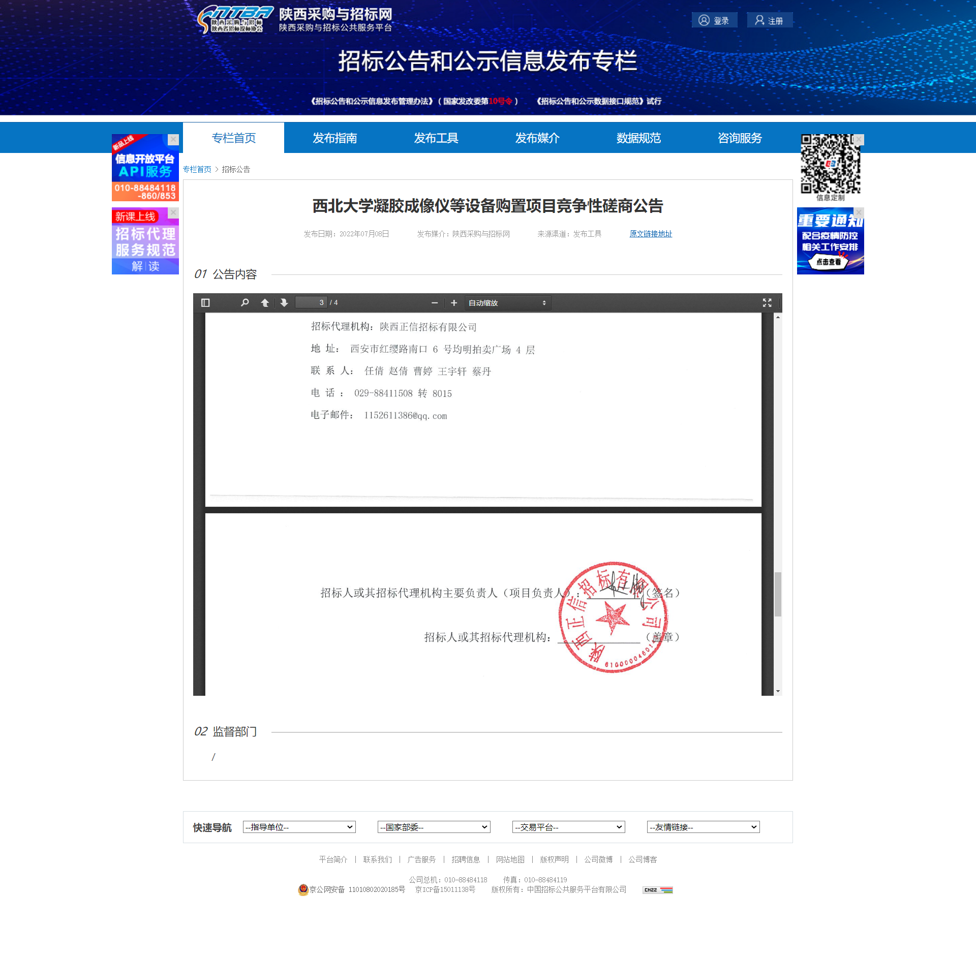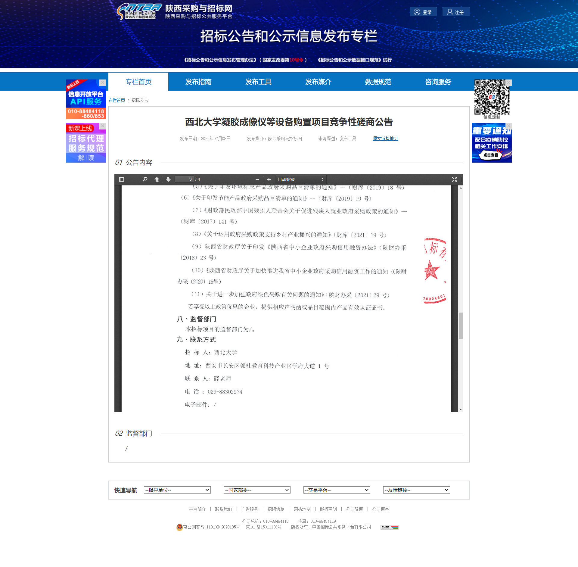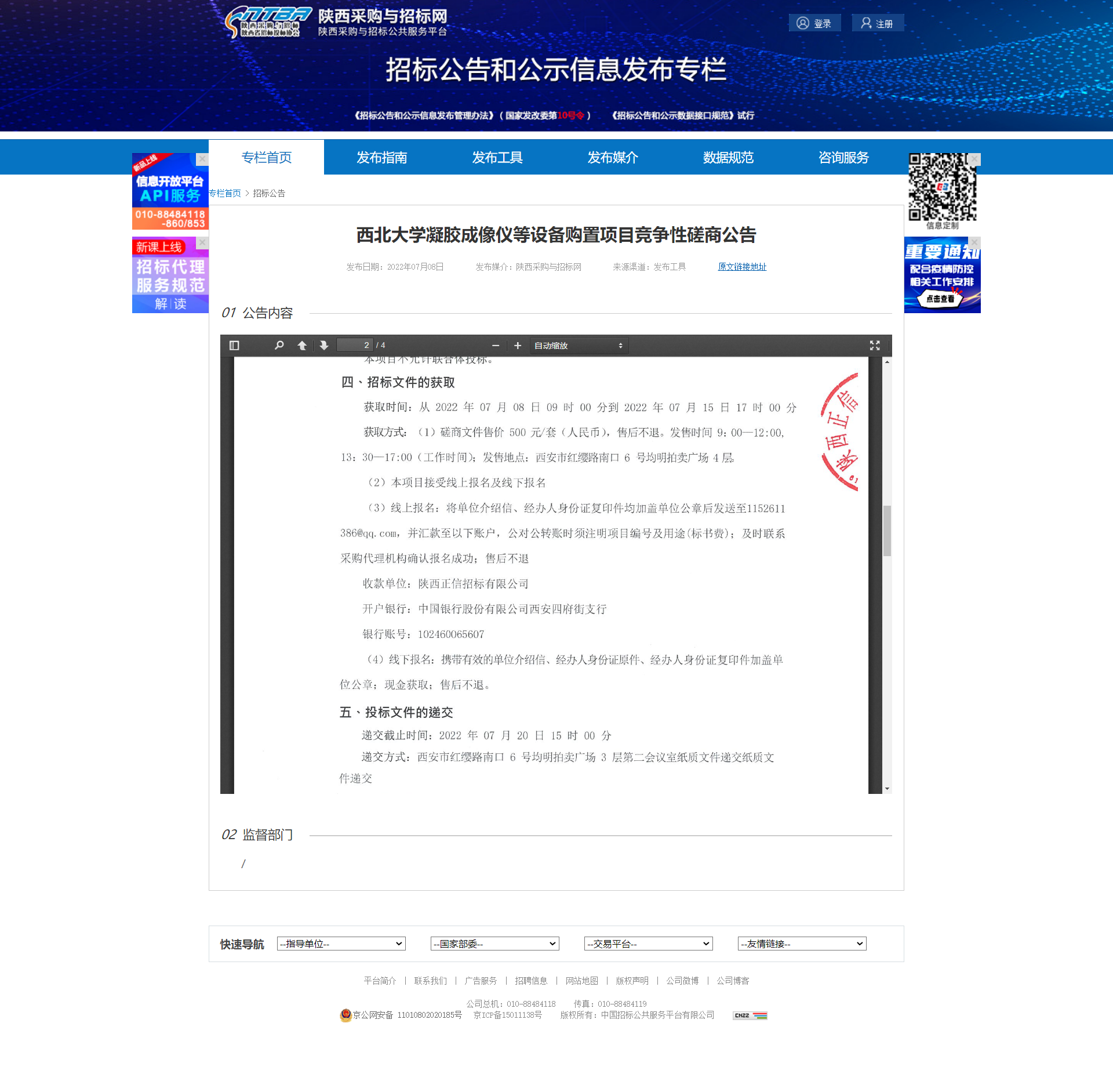 乐投平台凝胶成像仪等设备购置项目竞争性磋商公告 作者: 编辑:薛利娟 时间:2022-07-08 原公告链接:http://bulletin.sntba.com/biddingBulletin/2022-07-08/445120.html