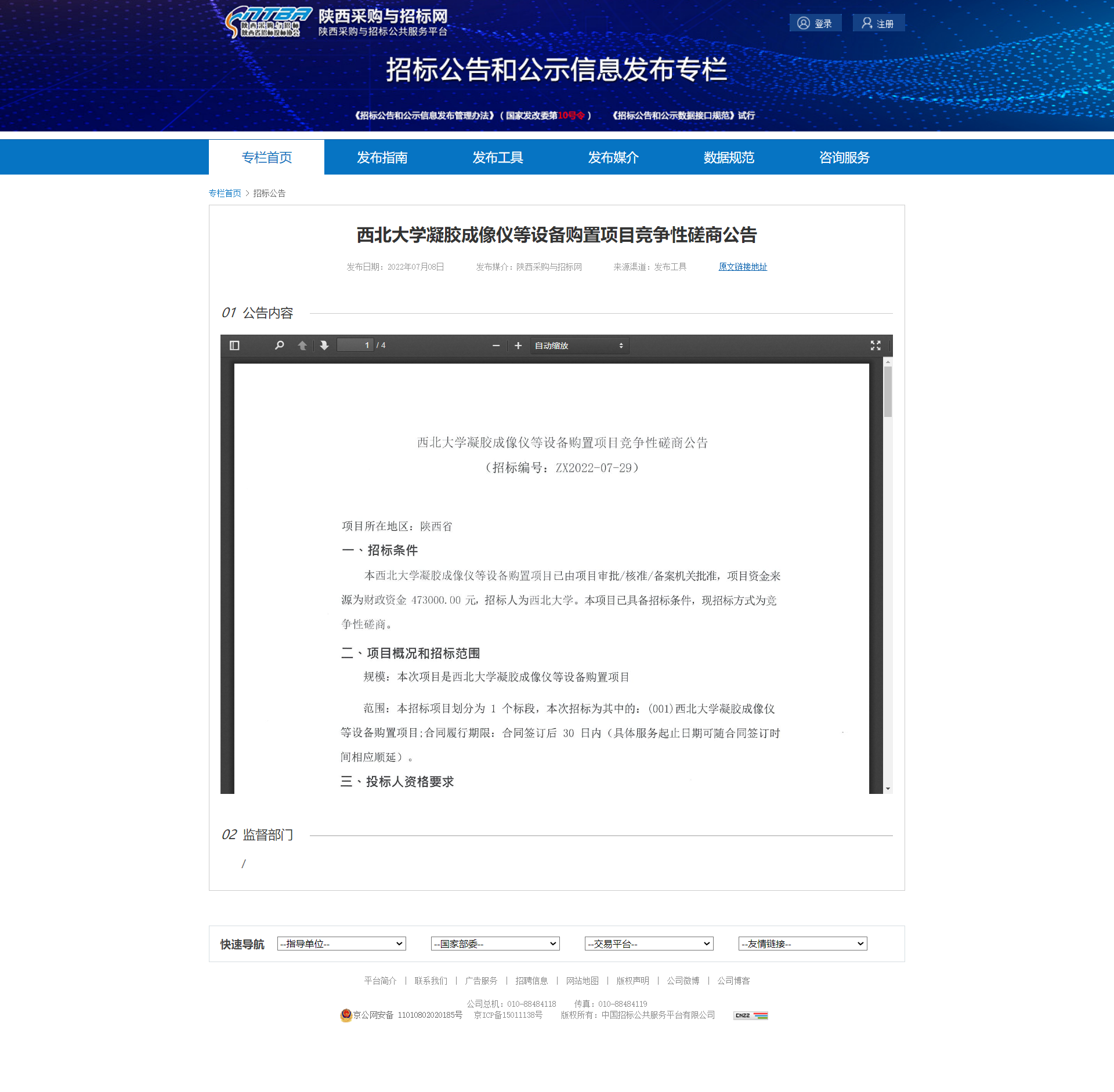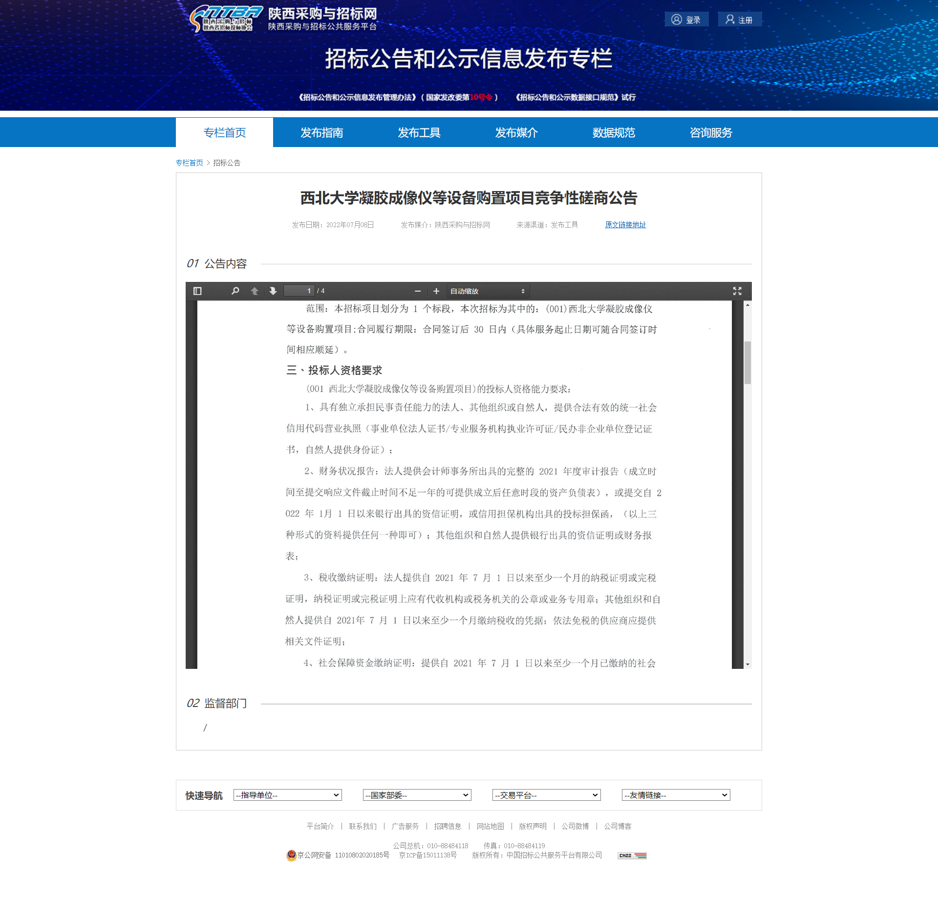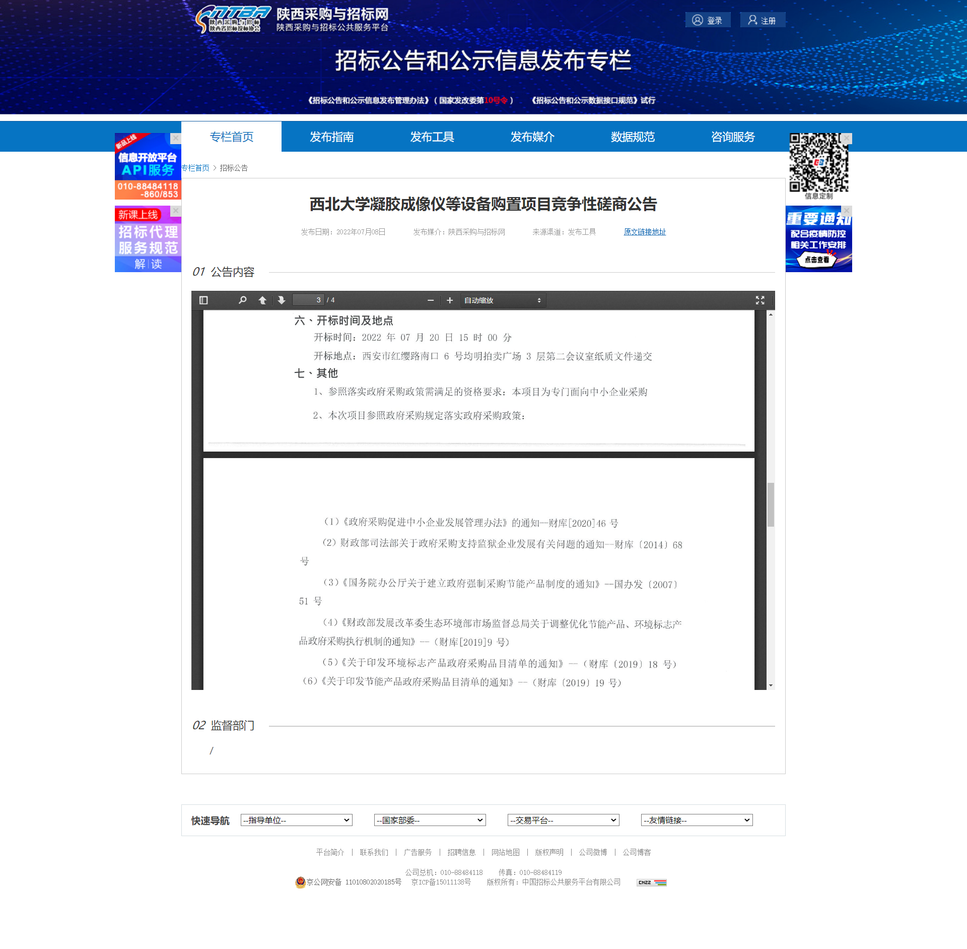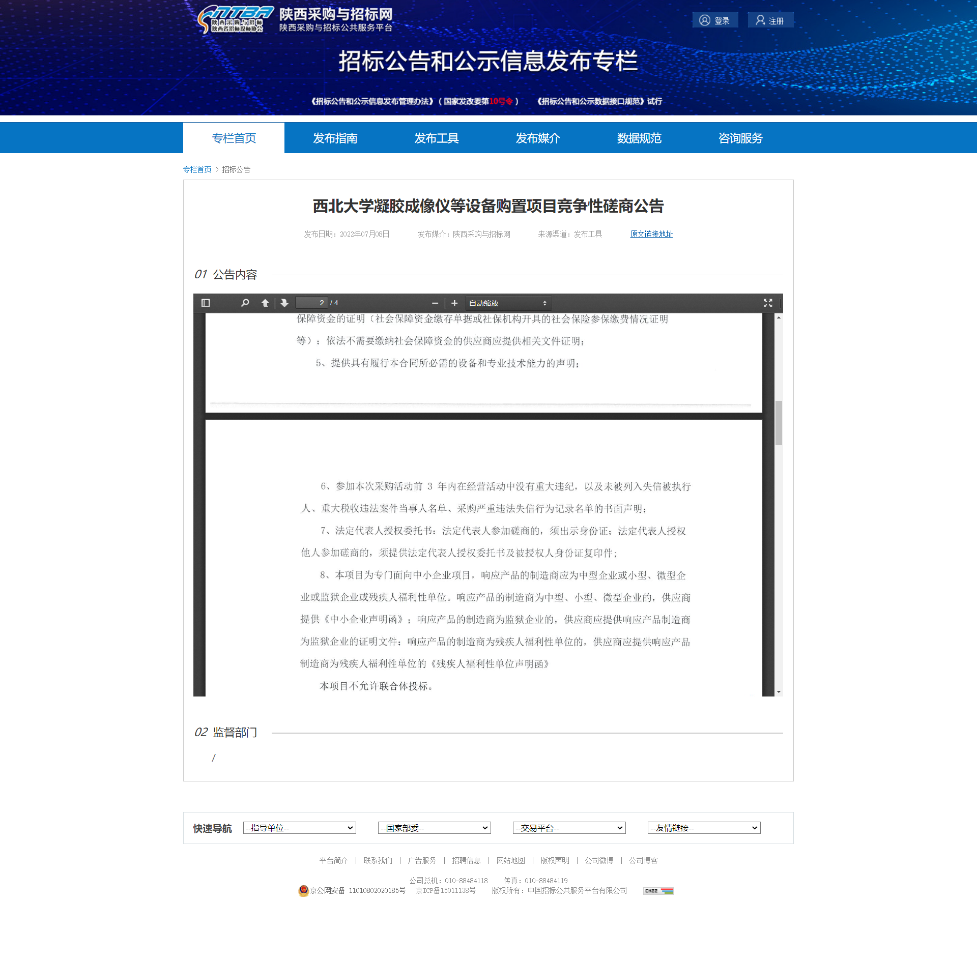 乐投平台凝胶成像仪等设备购置项目竞争性磋商公告 作者: 编辑:薛利娟 时间:2022-07-08 原公告链接:http://bulletin.sntba.com/biddingBulletin/2022-07-08/445120.html