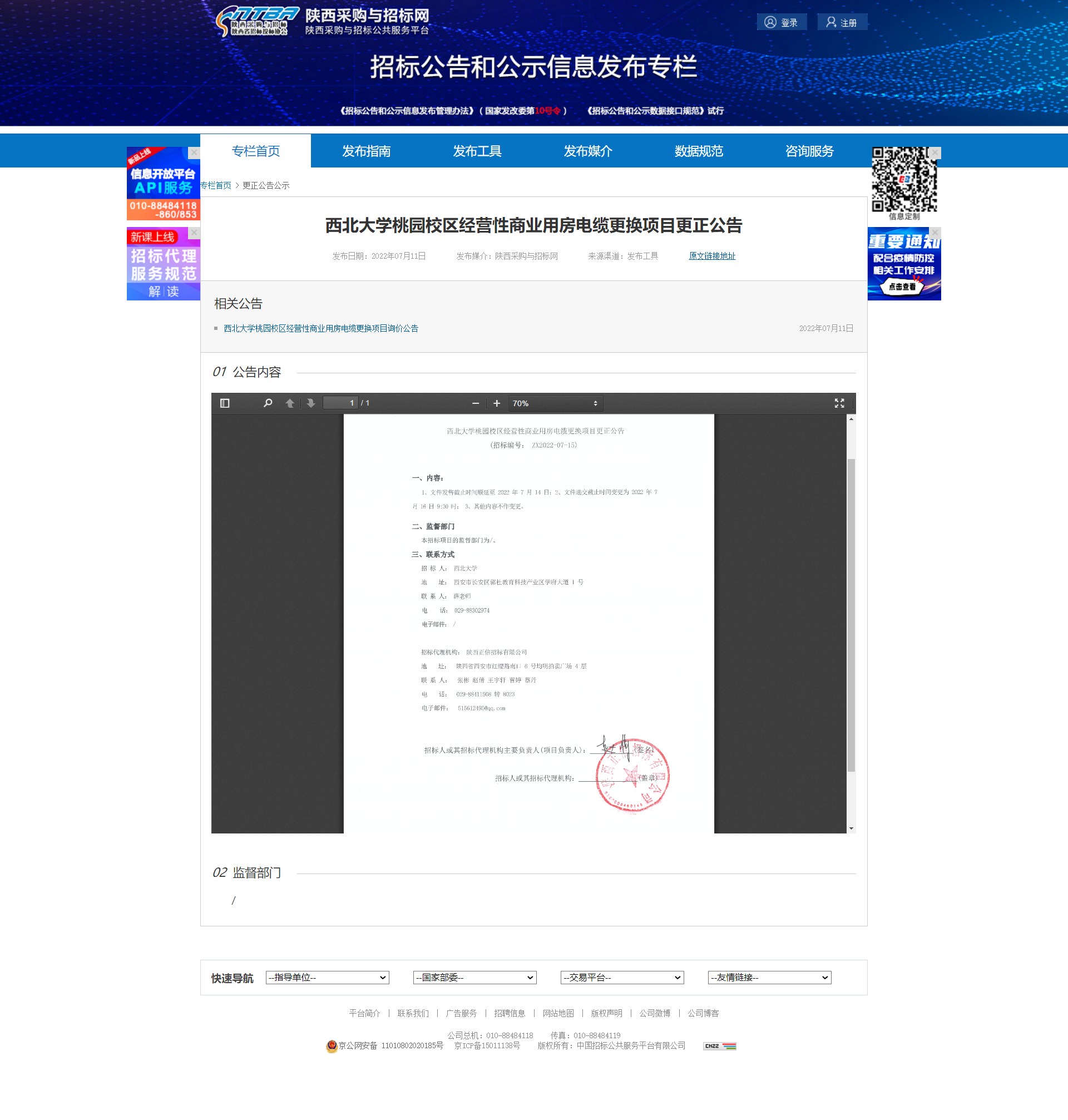 乐投平台桃园校区经营性商业用房电缆更换项目更正公告 作者: 编辑:采购与招标办公室 时间:2022-07-11 原公告链接:http://bulletin.sntba.com/changeBulletin/2022-07-11/445839.html
