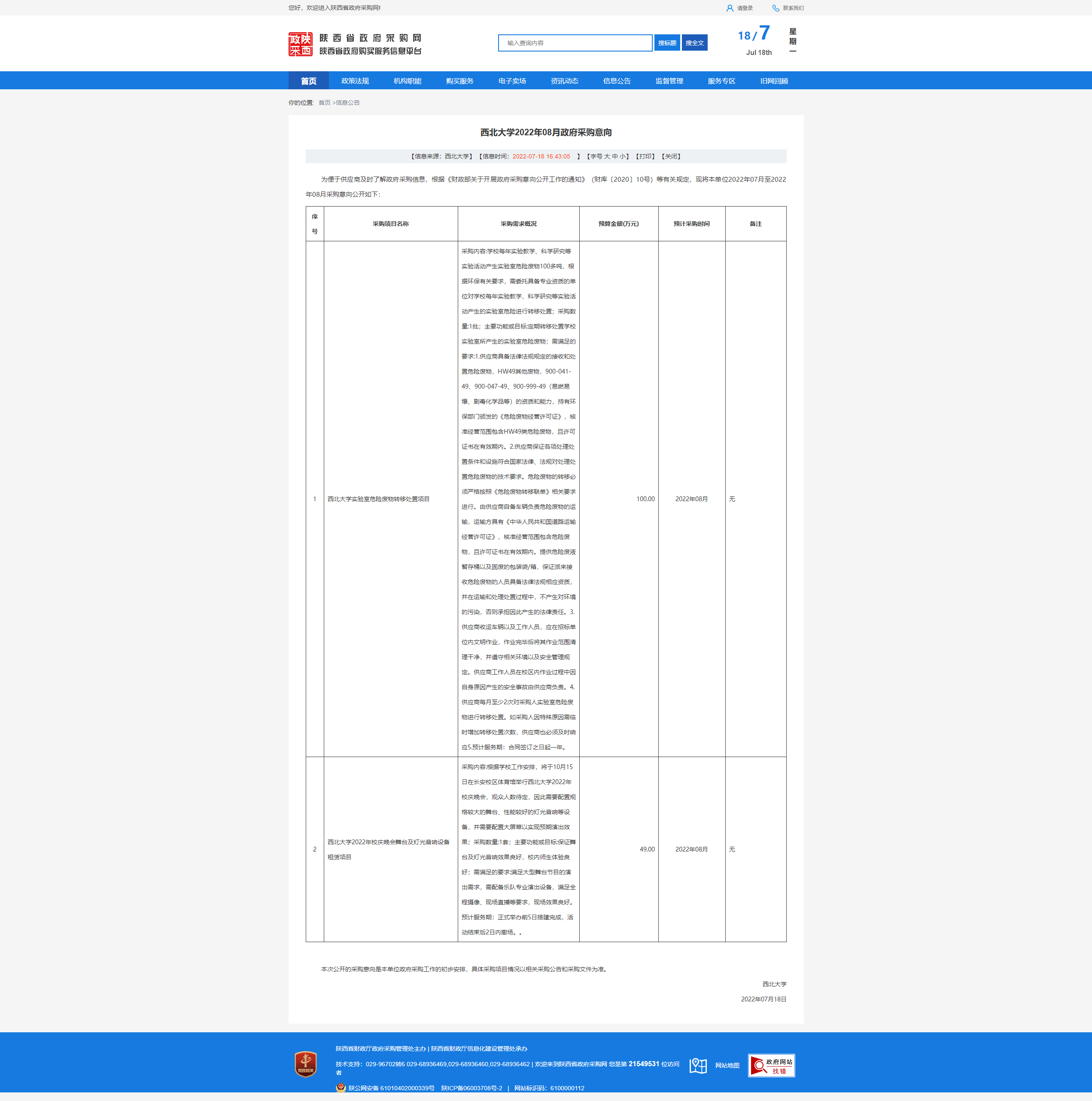 乐投平台2022年08月政府采购意向