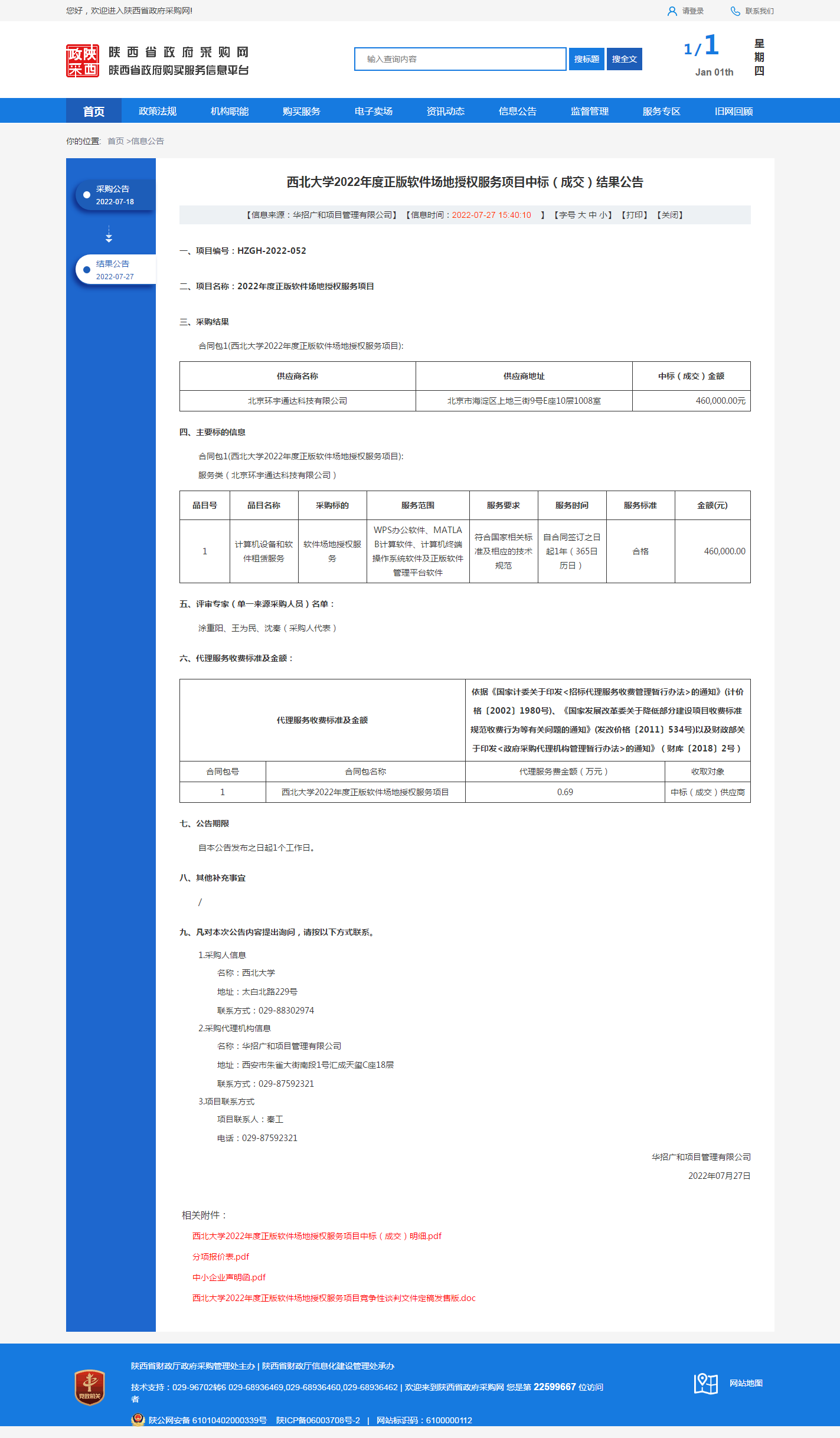 乐投平台2022年度正版软件场地授权服务项目中标(成交)结果公告