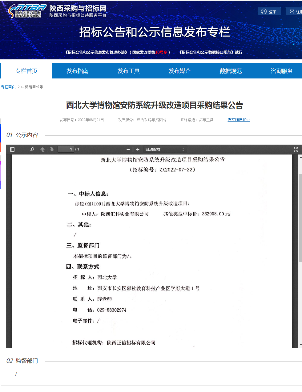 乐投平台博物馆安防系统升级改造项目采购结果公告 作者: 编辑:采购与招标办公室 时间:2022-08-01 原公告链接:http://bulletin.sntba.com/resultBulletin/2022-08-01/455464.html