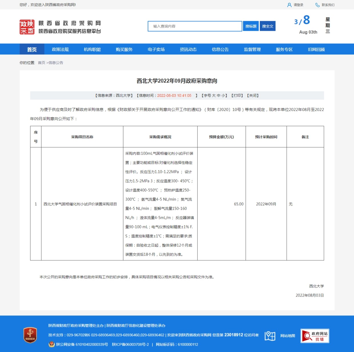 乐投平台2022年09月政府采购意向 作者: 编辑:采购与招标办公室 时间:2022-08-03 原公告链接:http://www.ccgp-shaanxi.gov.cn/freecms/site/shaanxi/ggxx/info/2022/8a69c772825d981a0182618af40b545a.html?noticeType=59¬iceId=21ebc324-12d6-11ed-9a8e-08c0eb20c666