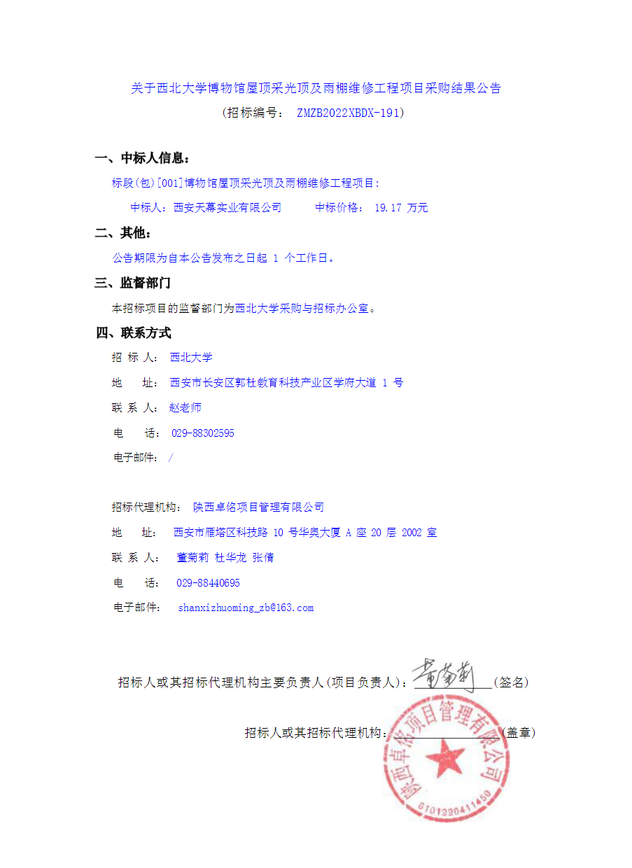 关于乐投平台博物馆屋顶采光顶及雨棚维修工程项目采购结果公告