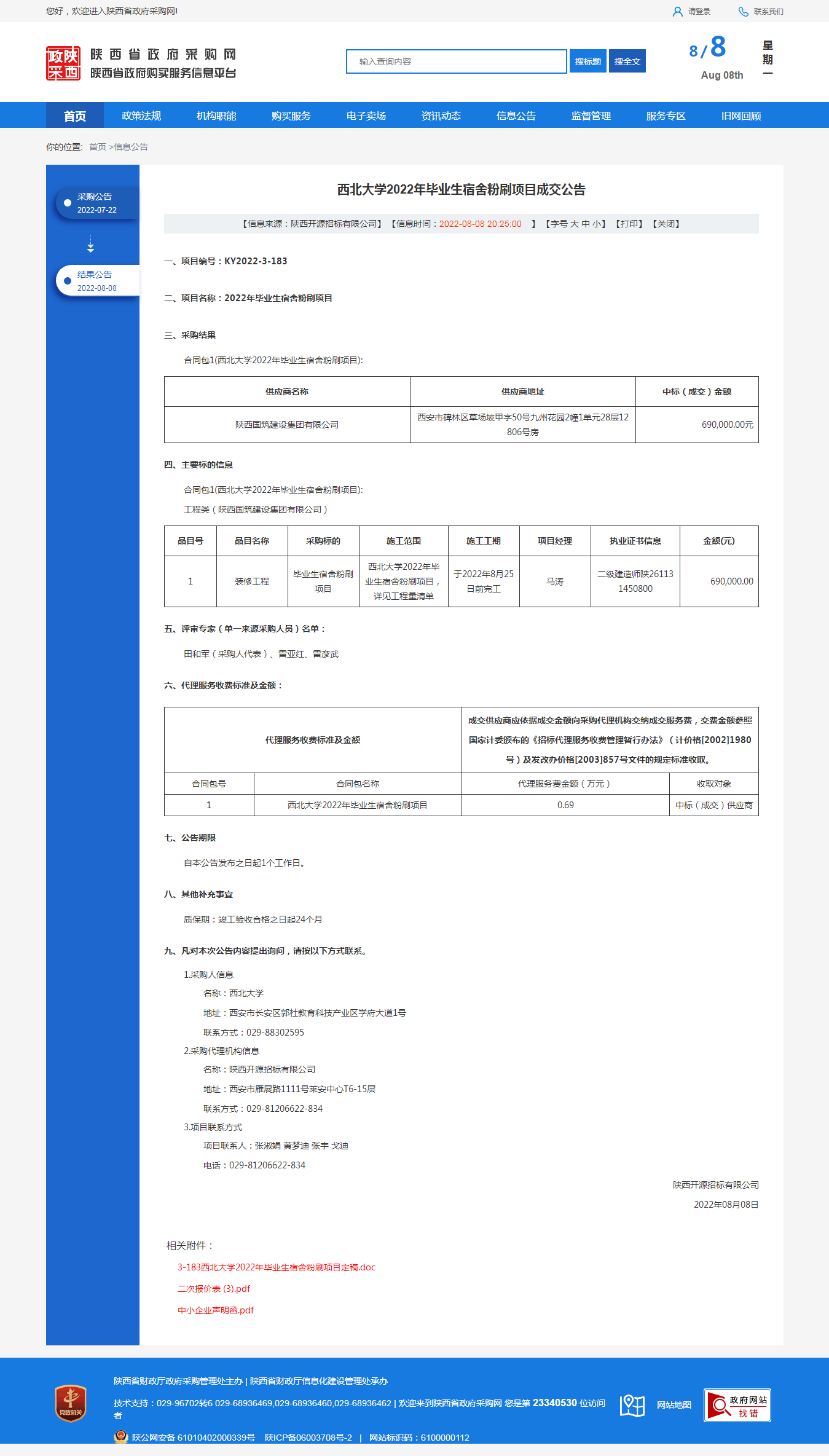 乐投平台2022年毕业生宿舍粉刷项目成交公告