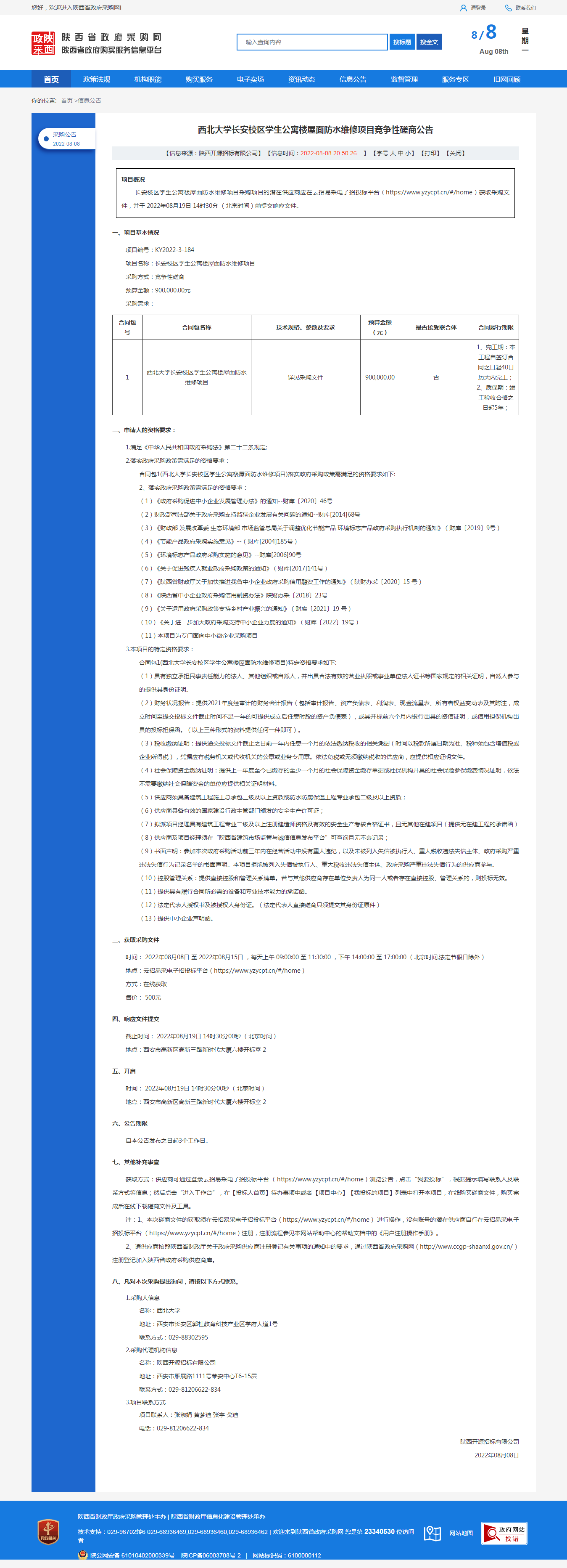 乐投平台长安校区学生公寓楼屋面防水维修项目竞争性磋商公告