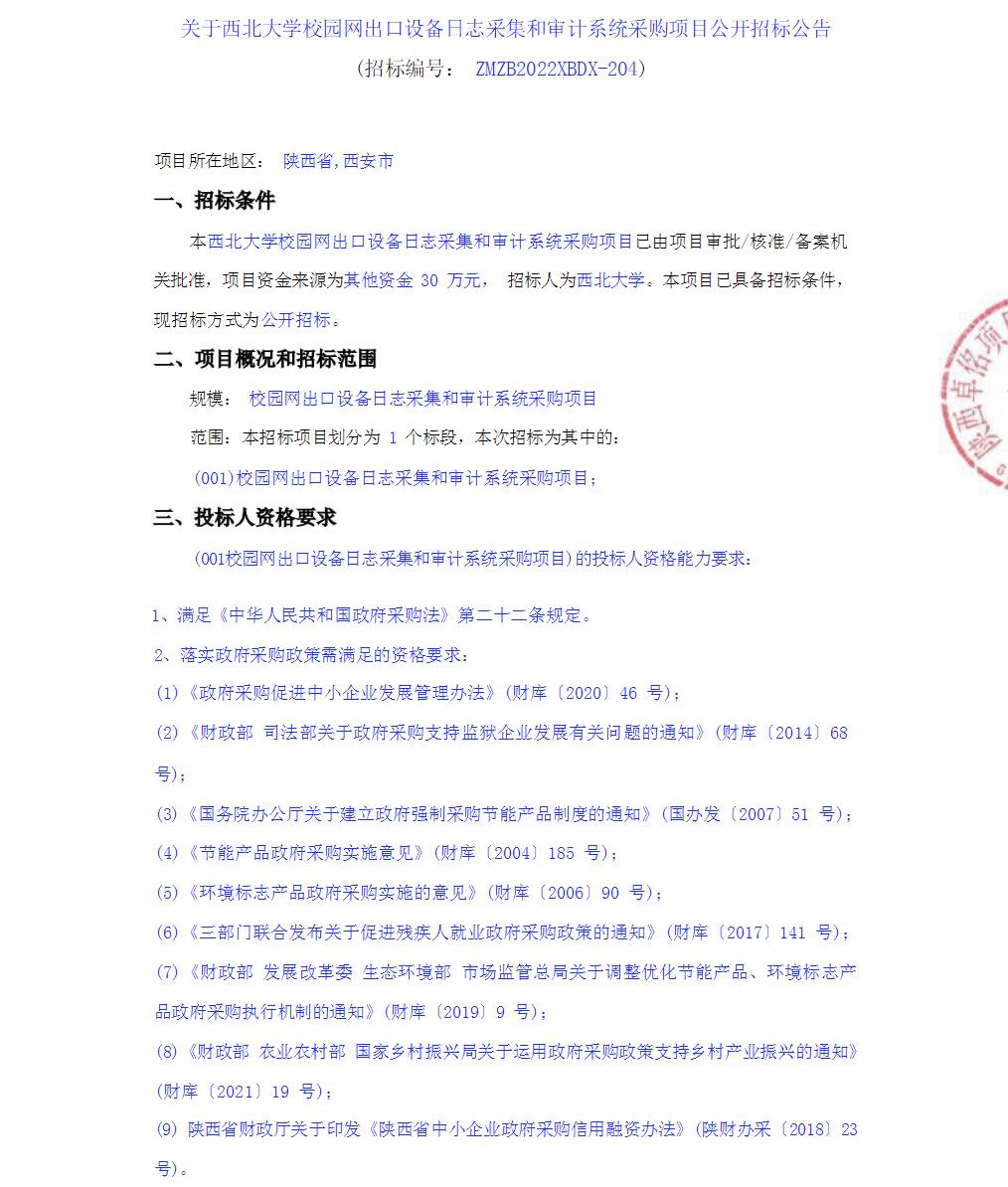 乐投平台校园网出口设备日志采集和审计系统采购项目公开招标公告