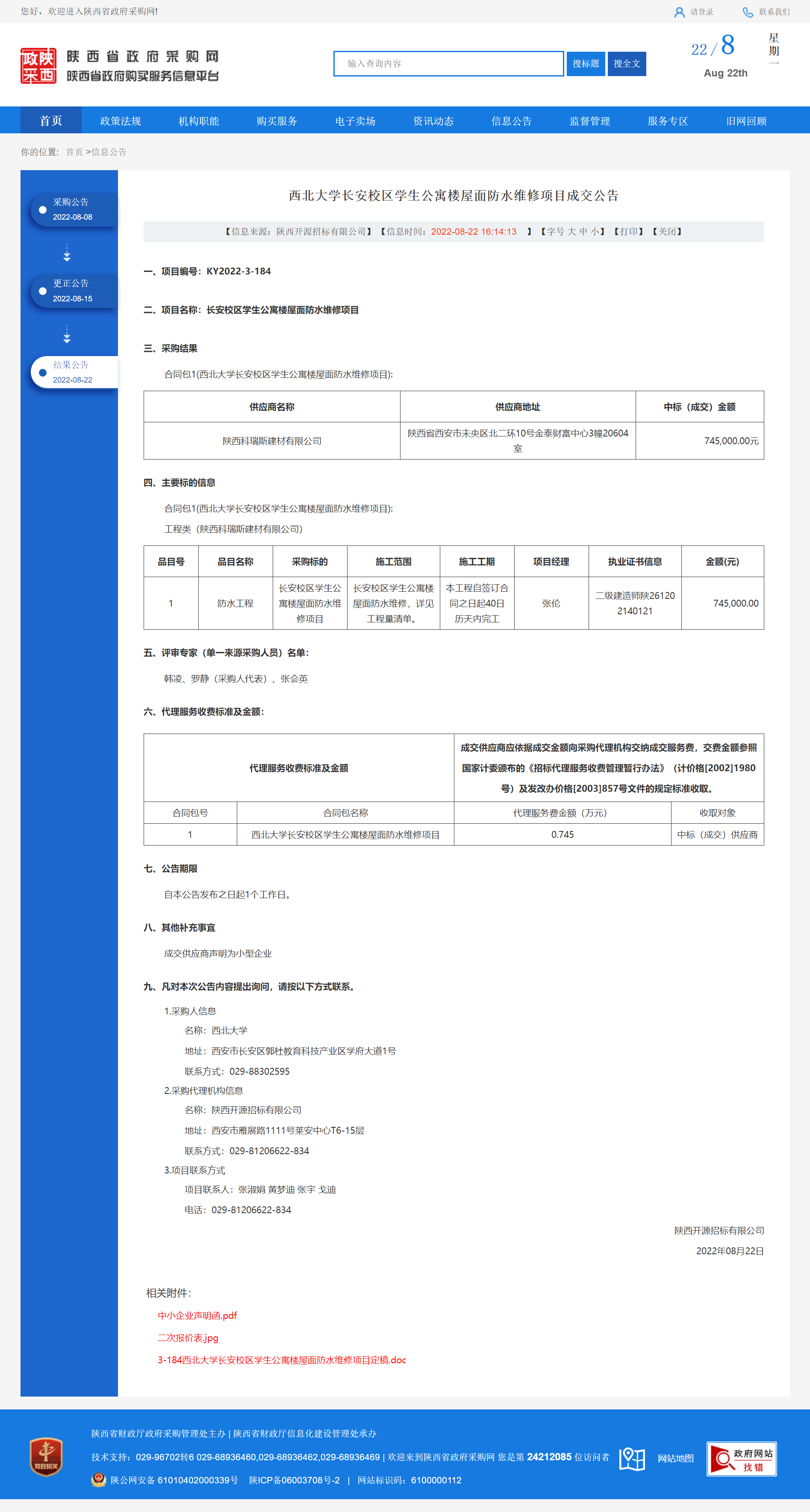 乐投平台长安校区学生公寓楼屋面防水维修项目成交公告