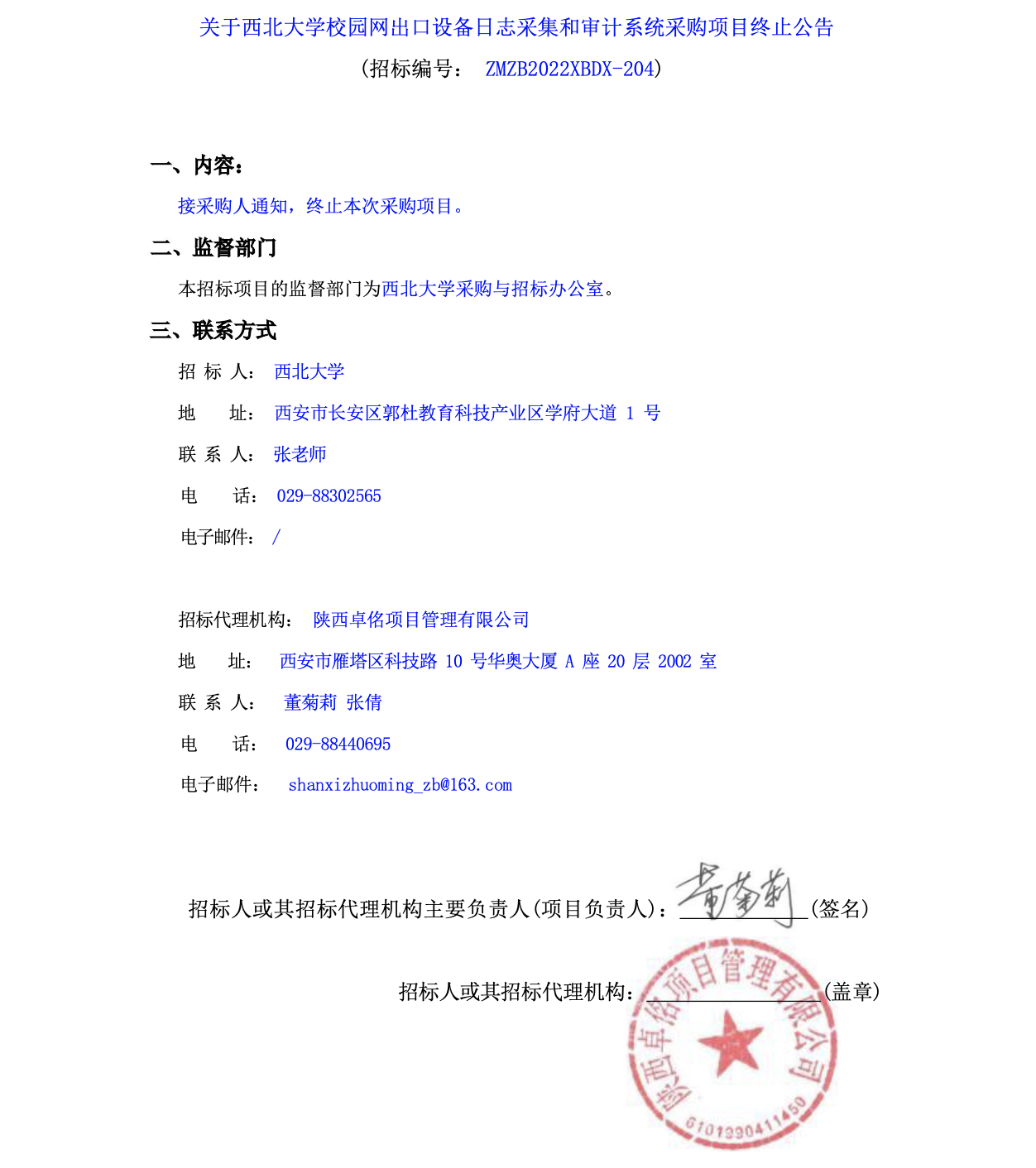 关于乐投平台校园网出口设备日志采集和审计系统采购项目终止公告