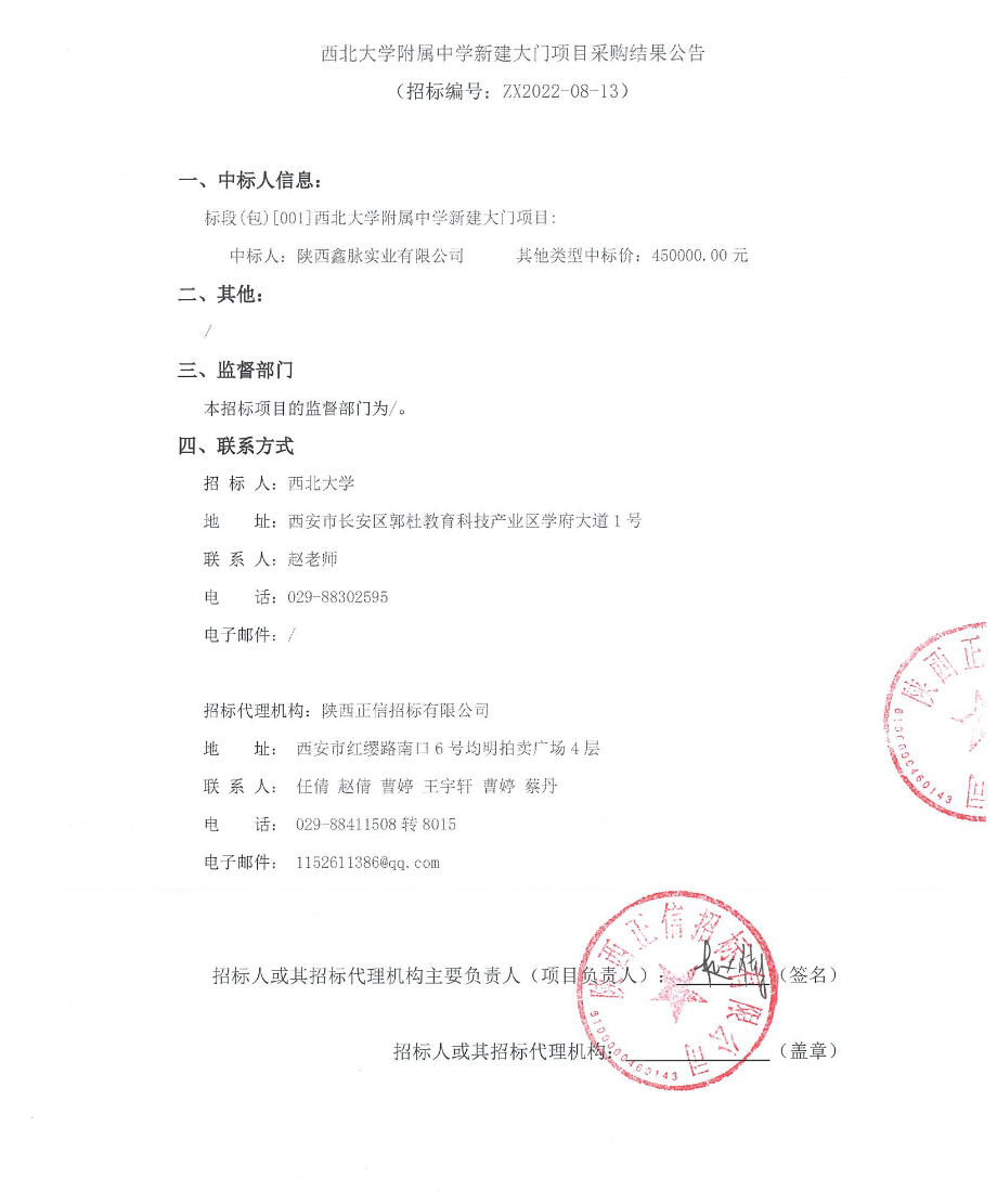 乐投平台附属中学新建大门项目采购结果公告