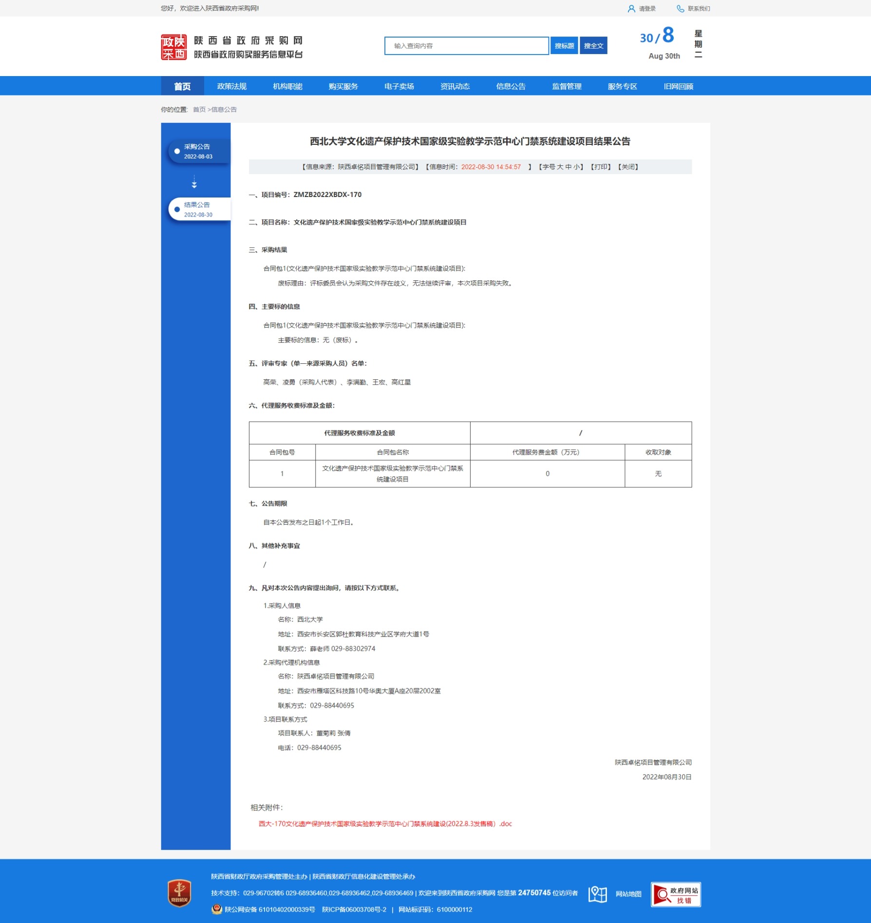 乐投平台文化遗产保护技术国家级实验教学示范中心门禁系统建设项目结果公告 作者: 编辑: 时间:2022-08-30 原公告链接:http://www.ccgp-shaanxi.gov.cn/freecms/site/shaanxi/ggxx/info/2022/8a69c59682a320a40182ed7d58d93426.html?noticeType=001006¬iceId=225c2bea-2831-11ed-9a8e-08c0eb20c666