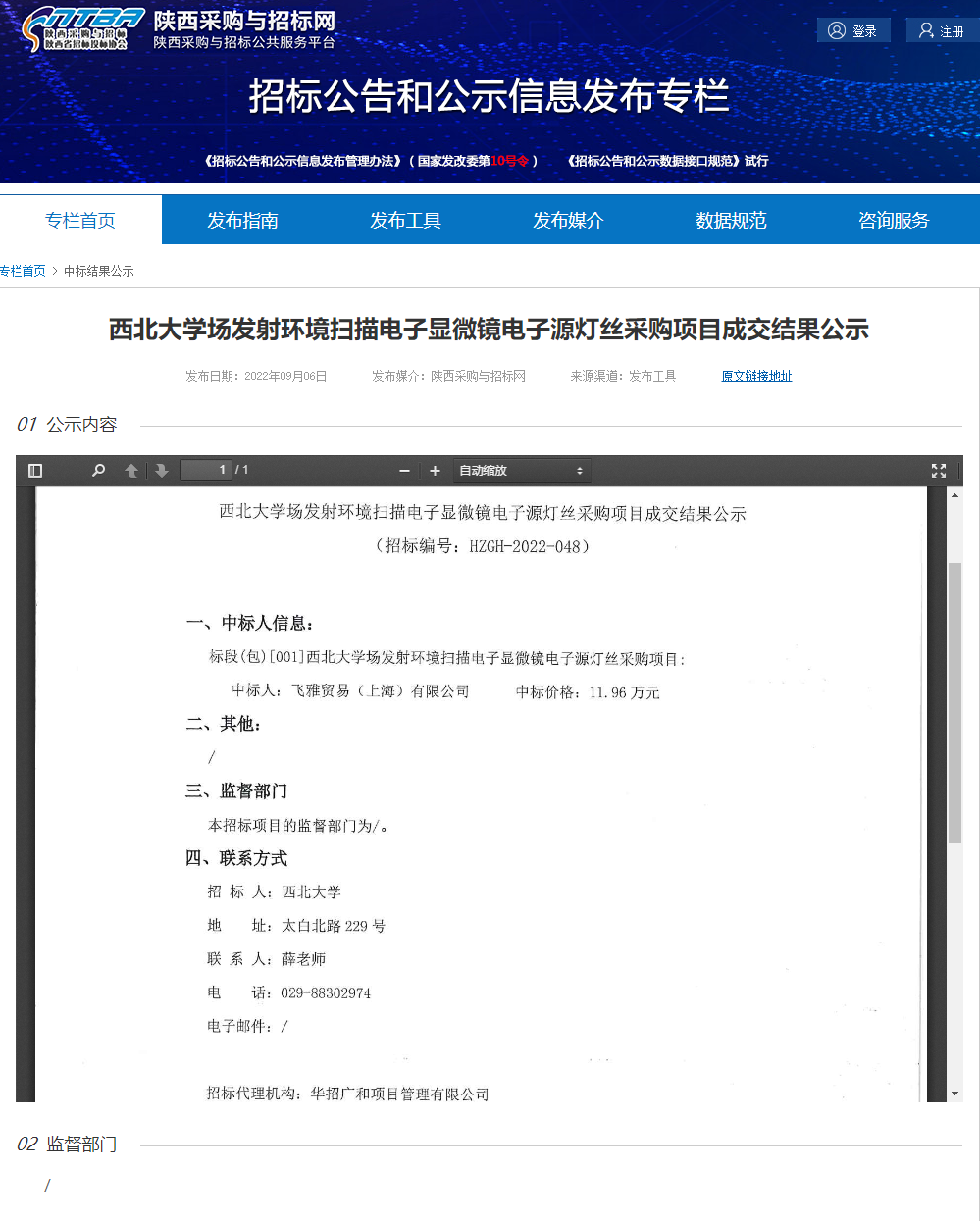 乐投平台场发射环境扫描电子显微镜电子源灯丝采购项目成交结果公示 作者: 编辑:采购与招标办公室 时间:2022-09-06 原公告链接:http://bulletin.sntba.com/resultBulletin/2022-09-06/471051.html